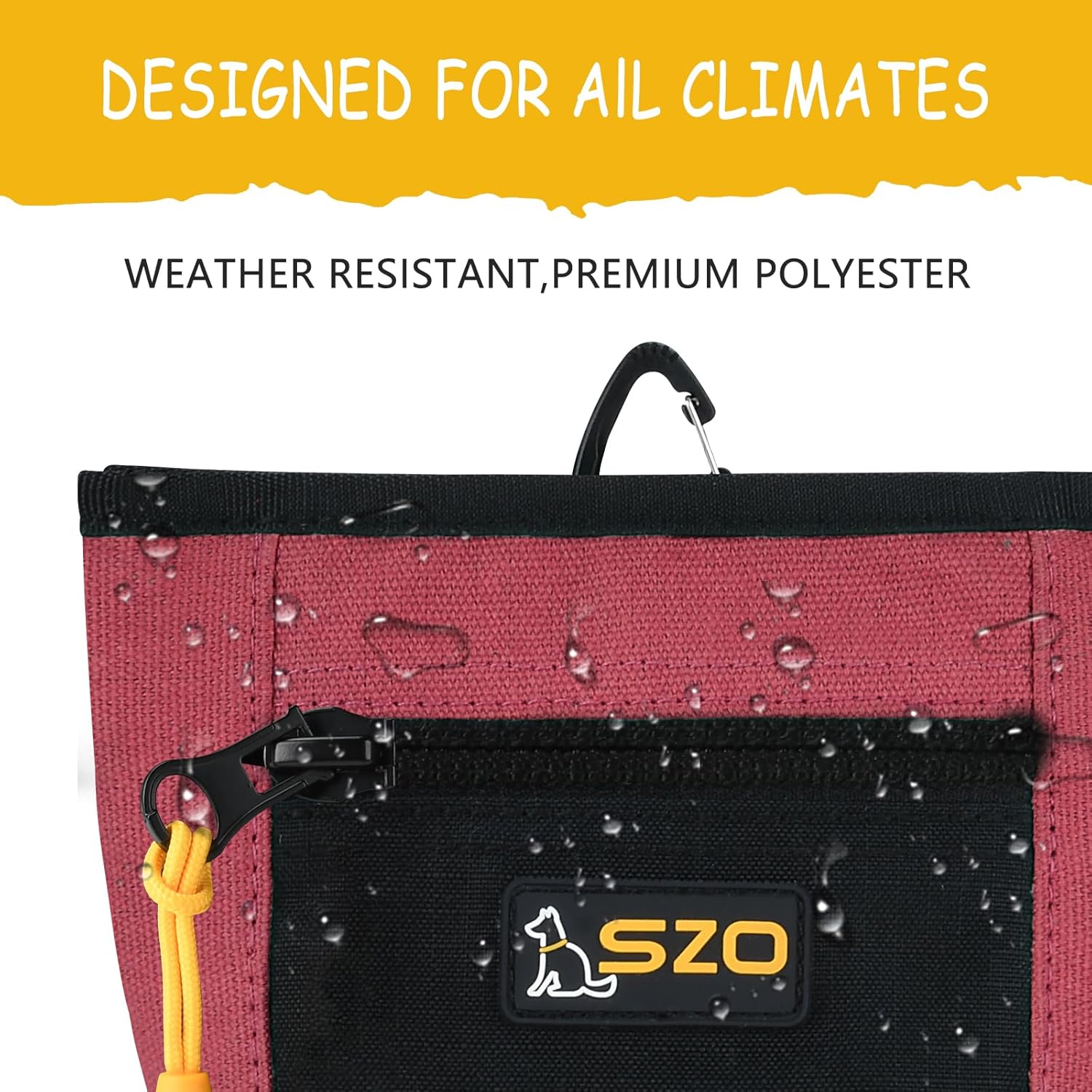 - Easy To Use — SZO dog treat pouch is designed to fit your everyday use when training your pets. It features a magnetic closure, allowing quick and one-handed access to your pet's favorite treats. And a front zipper pocket to secure personal items!