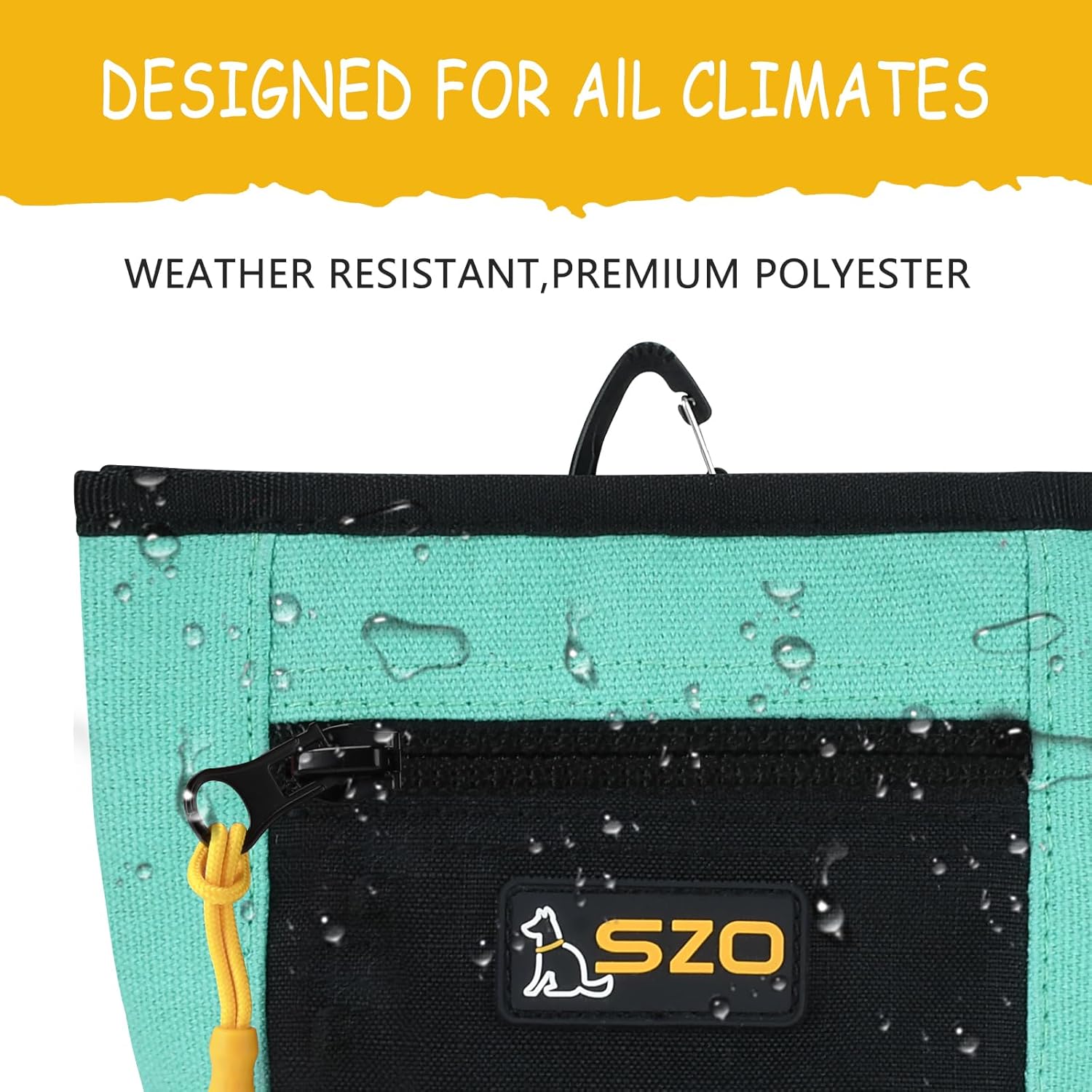 - Easy To Use — SZO dog treat pouch is designed to fit your everyday use when training your pets. It features a magnetic closure, allowing quick and one-handed access to your pet's favorite treats. And a front zipper pocket to secure personal items!