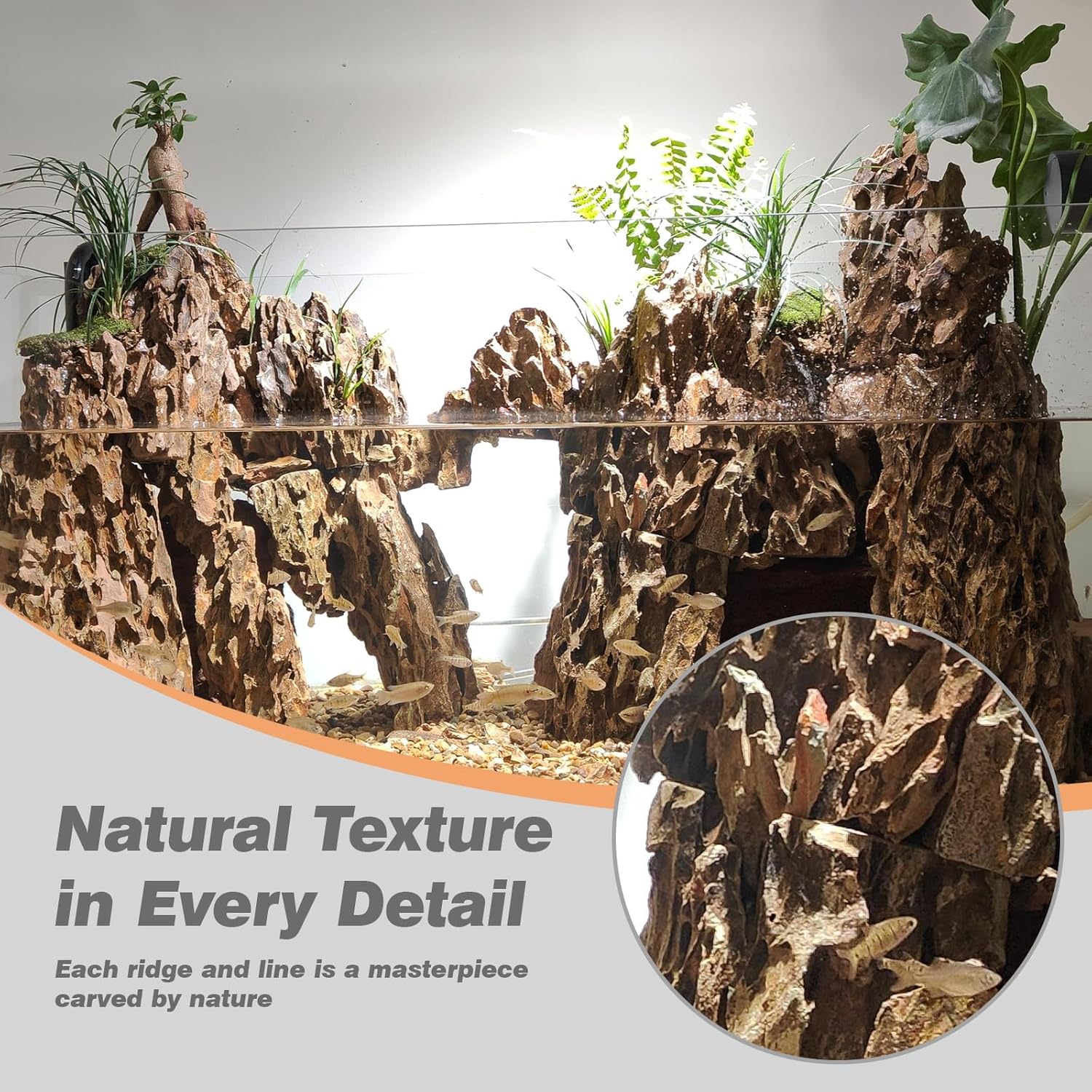 - ⛰Habitat and Shelter for Living Beings: Beyond its aesthetic appeal, fish tank rocks provides habitat and shelter for pets, fish, and plants. You can anchor plants in the stone's caves and mountains, offering a safe hiding place for shrimp and small fish.