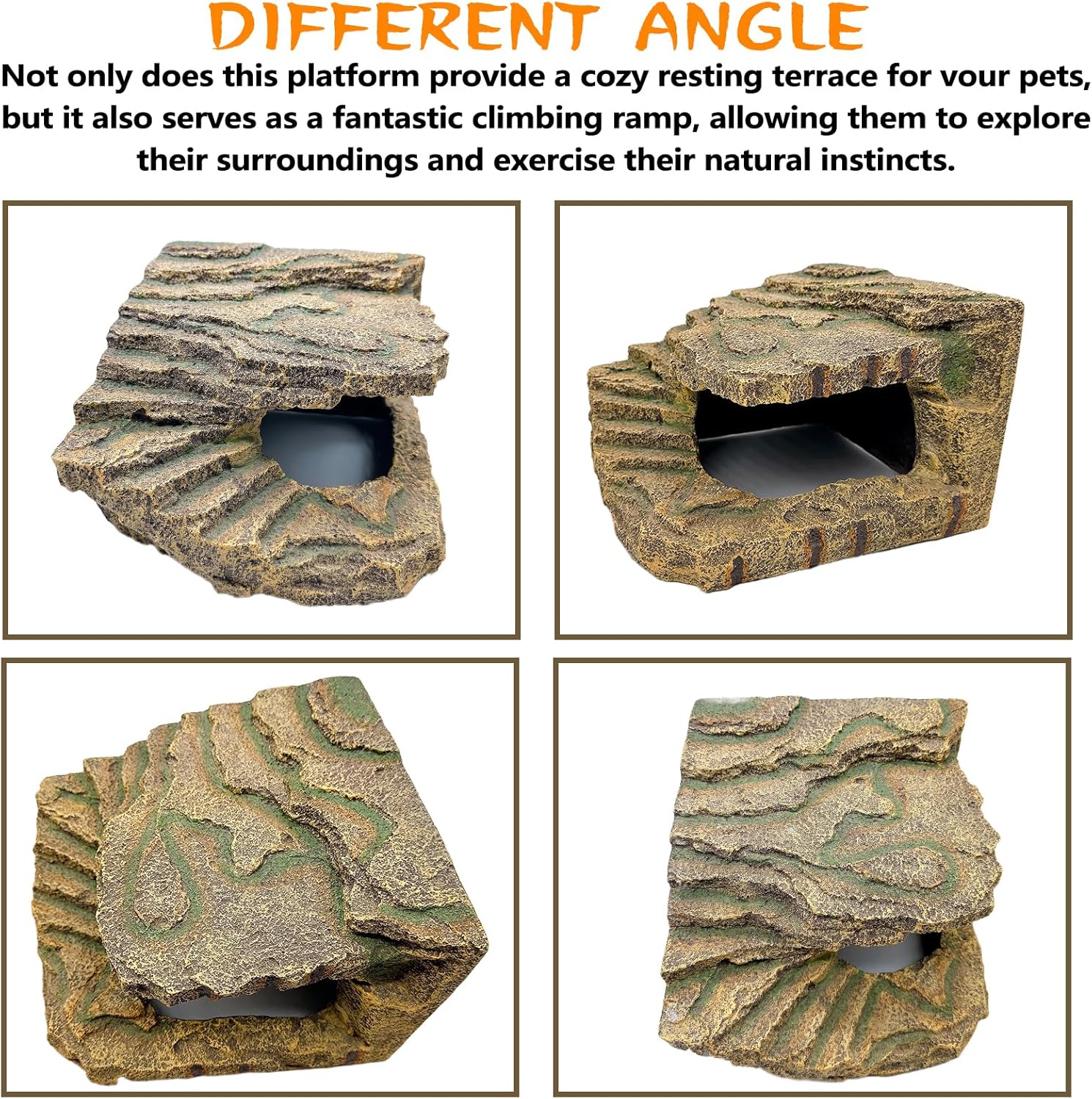- 【PLAY AND REST】Your reptiles get a natural opportunity to hide or play, satisfying a healthy desire for coolness, privacy and protection; Provides and elevated platform for your pet to bask and warm up.