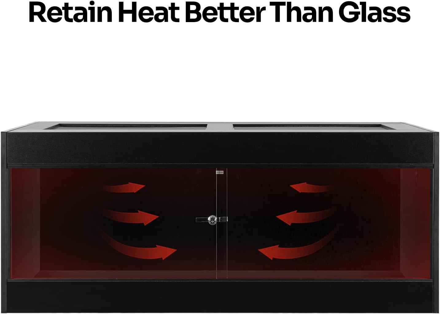 - 【Retain Heat Better Than Glass】Unlike glass or screen enclosures, the thickened wooden reptile enclosure provides excellent heat insulation, more in line with natural reptiles environment. Black and non-reflective surfaces reduce stress in your pets.