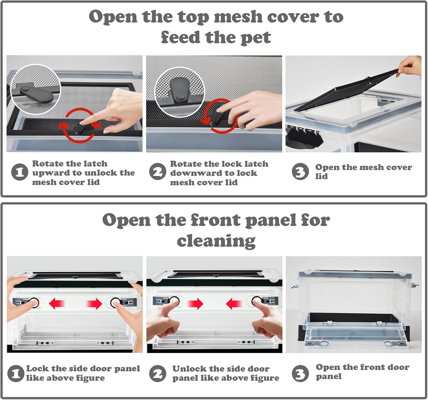 - Quality Material:Reptile feeding box is made of high quality plastic material,safe and sturdy,good transparency,durable,and not easy to break even if it is bitten or scratched by reptile,cages can be used safely for a long time. for pet hatching, small pet breeding box, temporary breeding or outdoor transportation and carrying