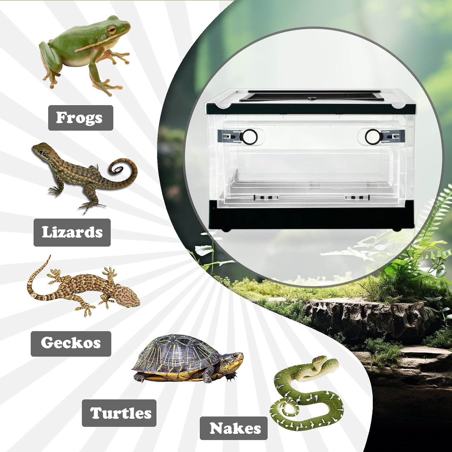 - Wide Application: Habitat mini pet breeding cage for very suitable for small reptiles and amphibians,including snakes, turtles, lizards,geckos,hermit crabs,bearded dragon,chameleons,scorpion,frogs,centipedes,snails and insects,providing them with a clean and safe comfort environment and space