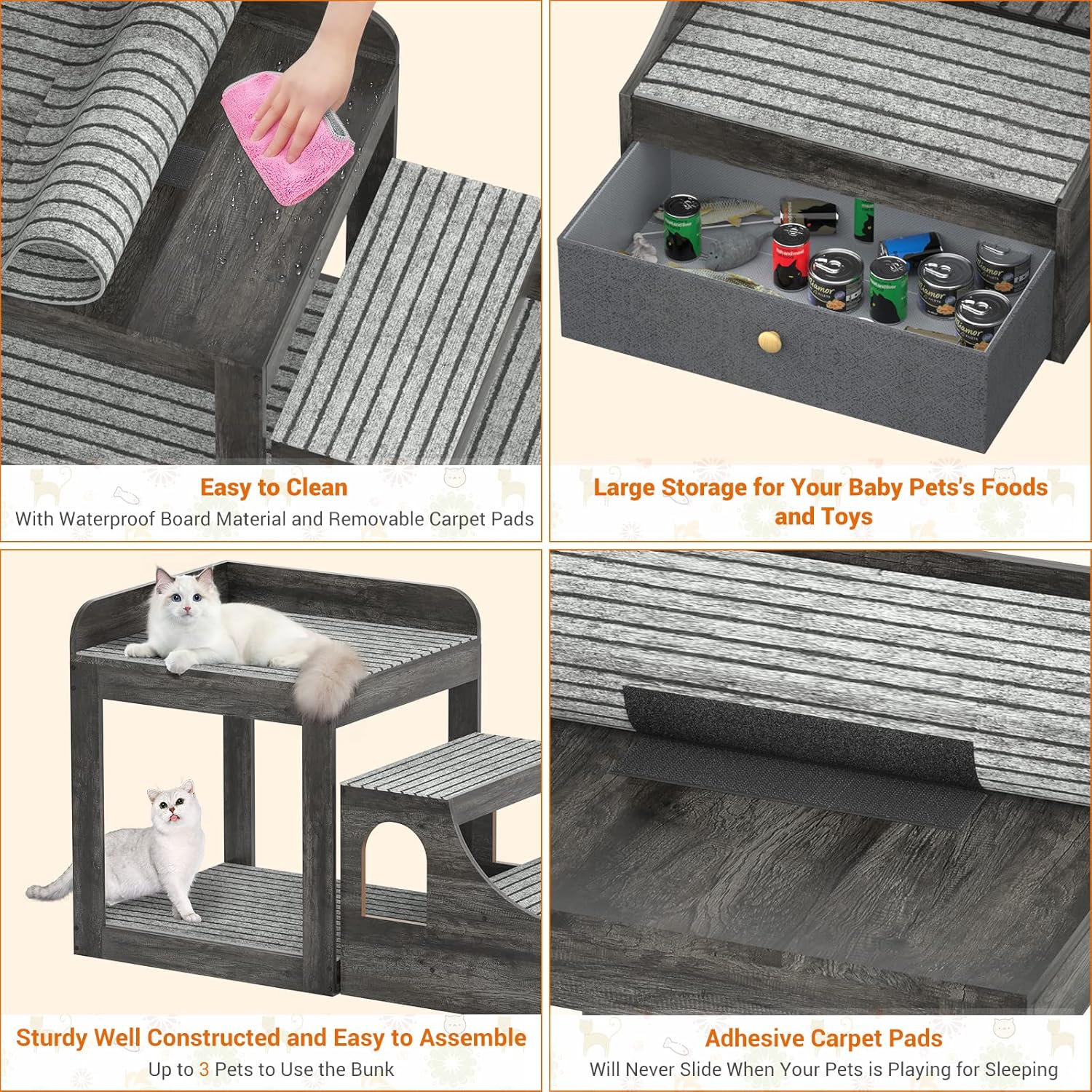 - 🐾 Heavy and Sturdy Quality - This grey cat window perch is heavy-duty and good material, it will come together with 3pcs adhesive carpet pads, and when your pet is playing or sleeping on the stair or top, they will never slide.