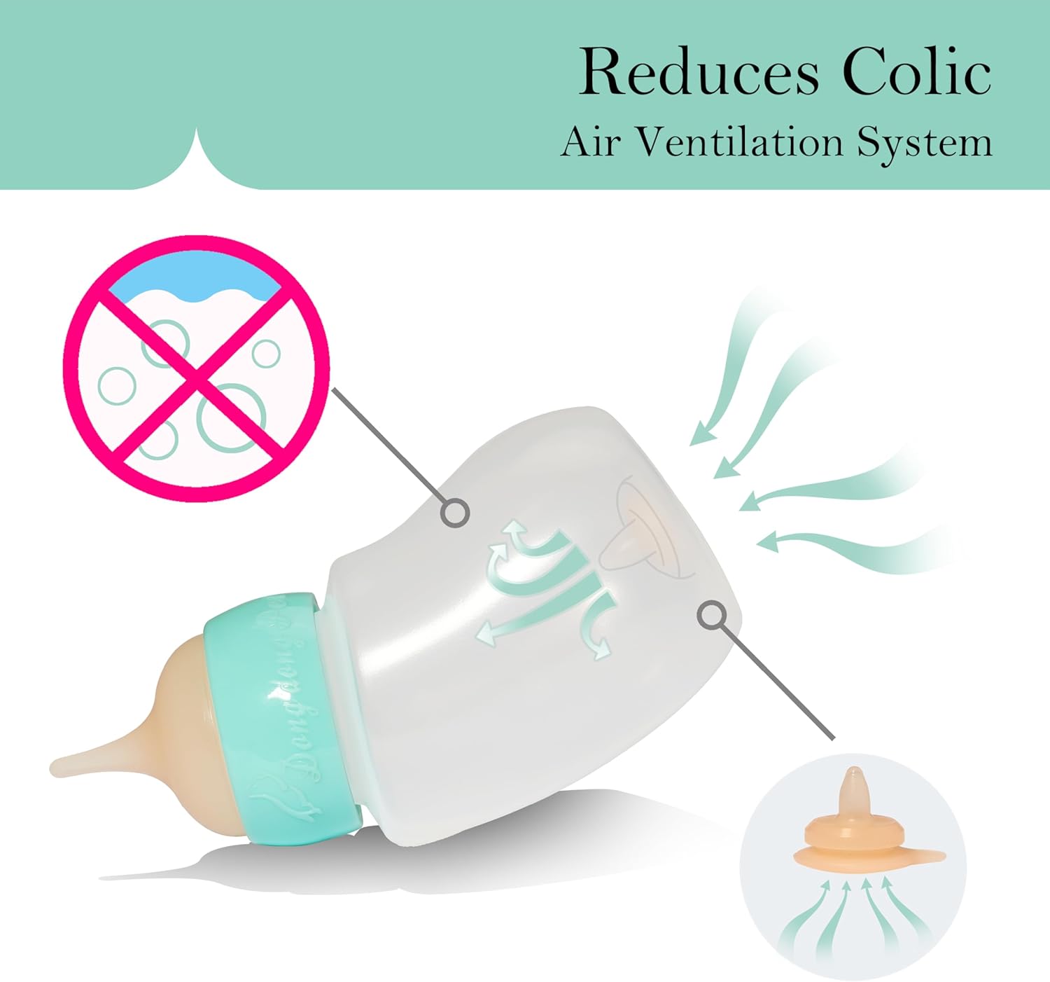- Bottle ventilation system similar to human babies: no need for ventilation when drinking milk, reducing the probability of choking on milk. A safety protection like giving a human baby