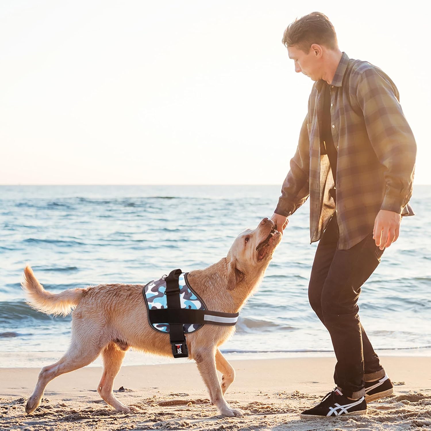 Dogline Dog Harness, Reflective No-Pull Adjustable Vest with Handle for Walking, Training, Breathable, No - Choke Harness for Small, Medium or Large Dogs Room for Patches Girth 27 to 34 in Blue Camo