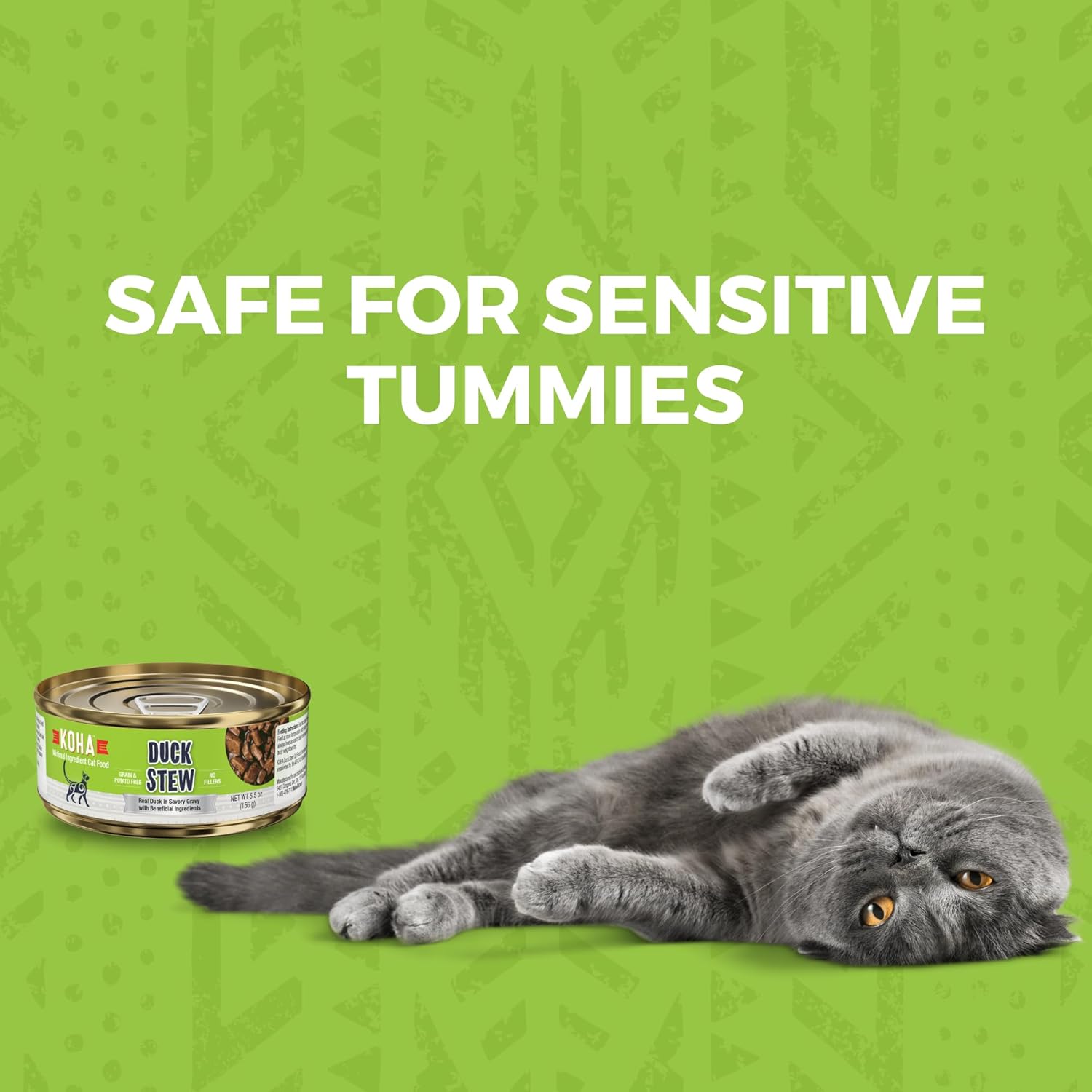 KOHA Minimal Ingredient Duck Stew for Cats, High Protein Limited Ingredient Wet Cat Food, 5.5oz Cans (Case of 24)