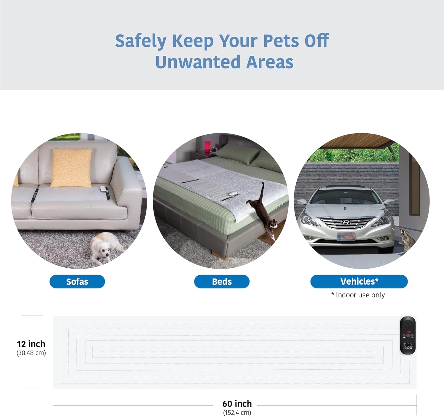 SVD.PET Pet Training Mat with Tester, 60" X 12", Pet Shock Pad, Dogs & Cats Electronic Repellent mat for Indoor, 3 Training Modes, 5 Levels, Pet Safe Mode (Black Controller)