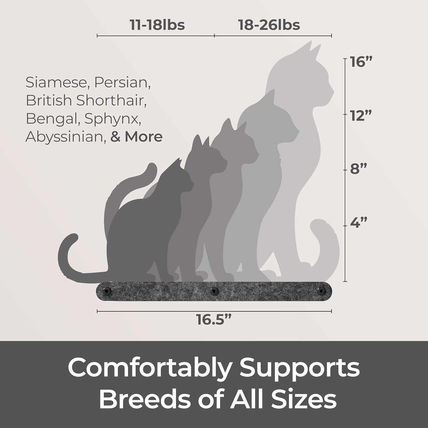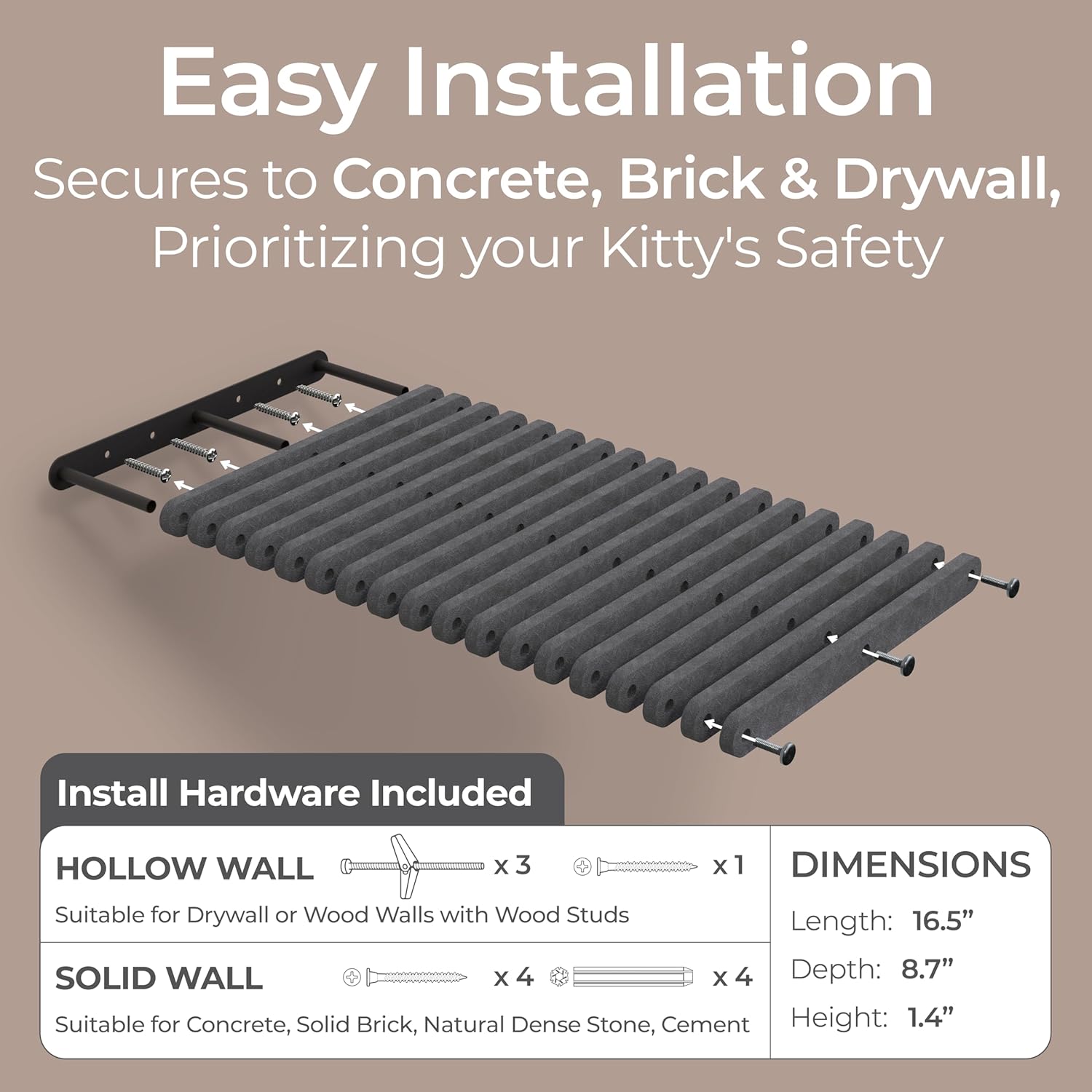 - Effortless Paradise: This cat wall bed includes all hardware, allowing your fur-baby to start exploring right away. Our cat climbing shelf securely attaches to concrete, cement, brick, dry wall and more ensuring your cat’s safety.