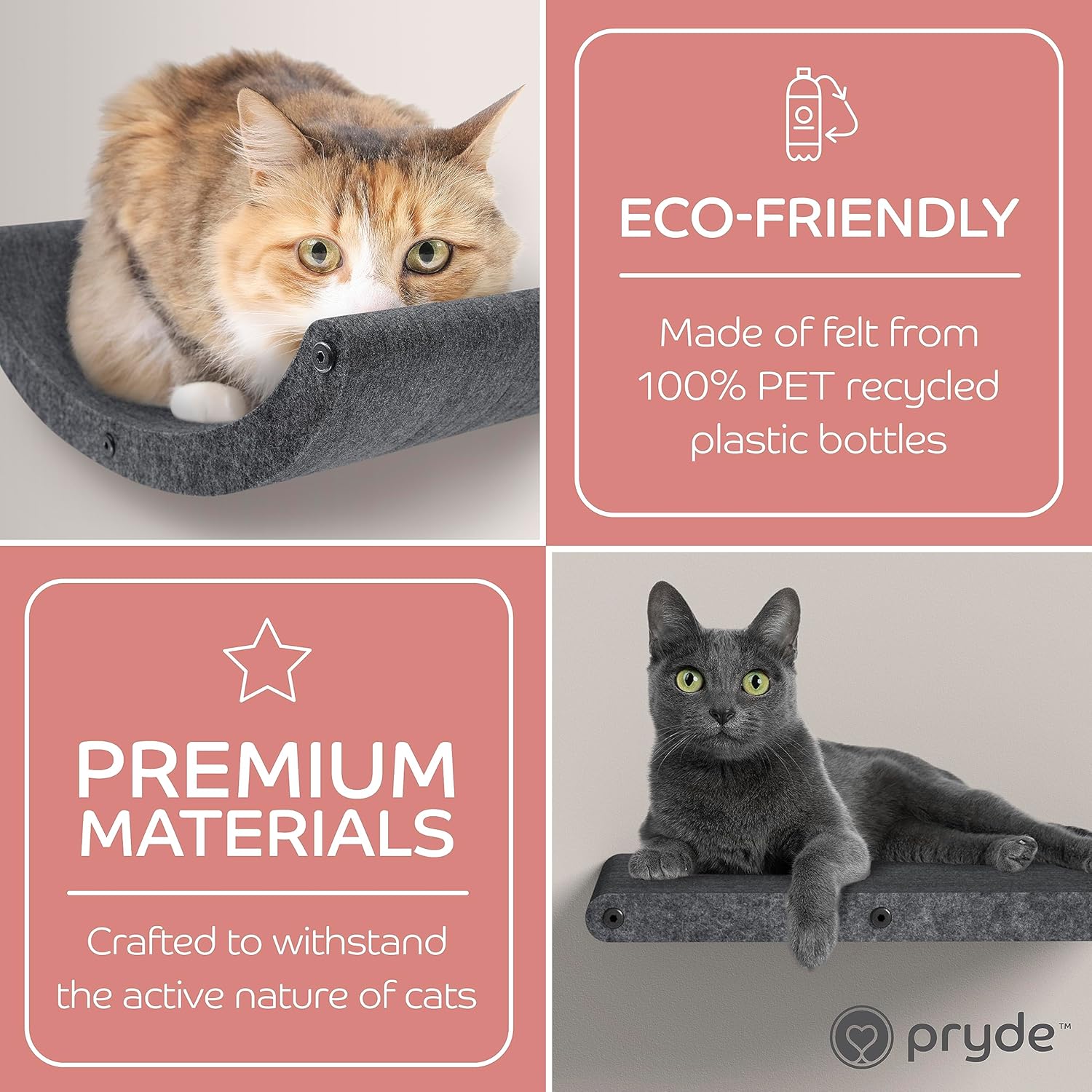Wall Mounted Cat Steps Short Shelves (2) by Pryde Pets - Stairs for Walkways, 100% Sustainable PET Felt Feline Enrichment Climber Furniture for Indoor Cats, Modern Climbing Gym Design (Charcoal)
