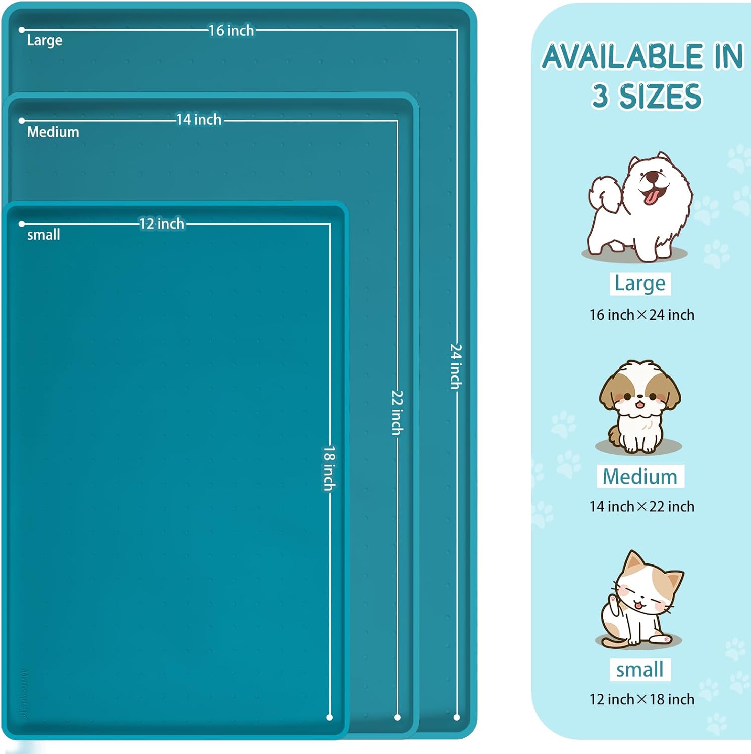 - Multiple Sizes & After-Sales: Service Our cat feeding mat and dog dish mats for floors waterproof come in 3 sizes and 8 colors, making them ideal for pets of all sizes. The dog food trays for floors can also be used as a rubber shoe mat tray, under sink mat, under sink tray, cat litter mat and litter box mat. If you have a chewer, please supervise him/her while using the cat bowl mat and dog bowl mat waterproof. Any issues, please feel free to contact us