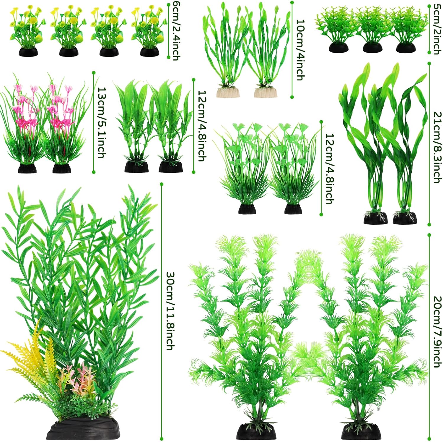 - Green Aquarium Decorations: 20 Pieces green and different styles Fish Tank Plants, small to large.