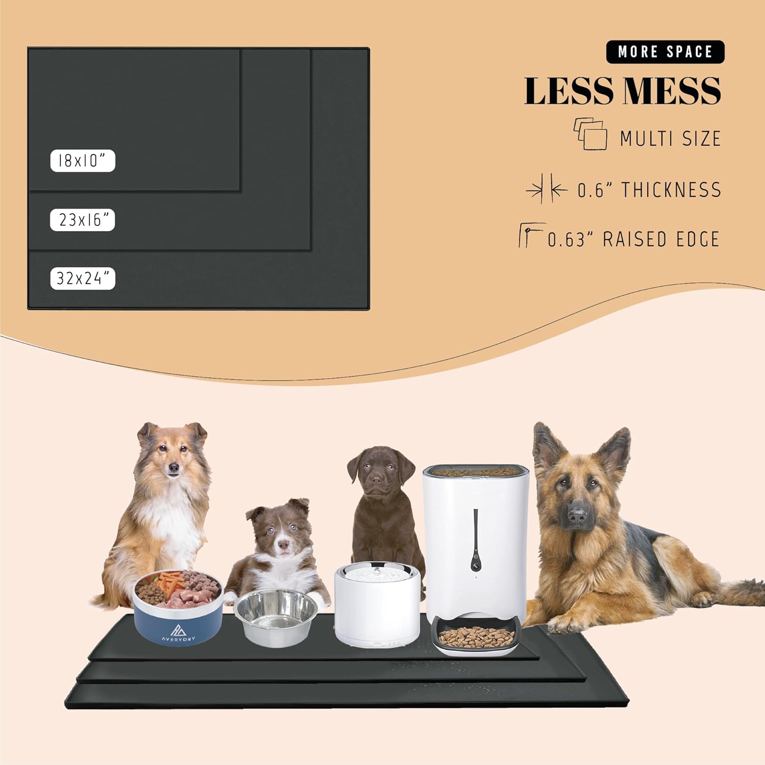 - Perfect for Small to Medium Breeds: Need a premium dog bowl mat for medium and small breeds? Elevate feeding affordably with AVERYDAY's 18x10'' pet bowl mat - where quality meets affordability for your furry friends