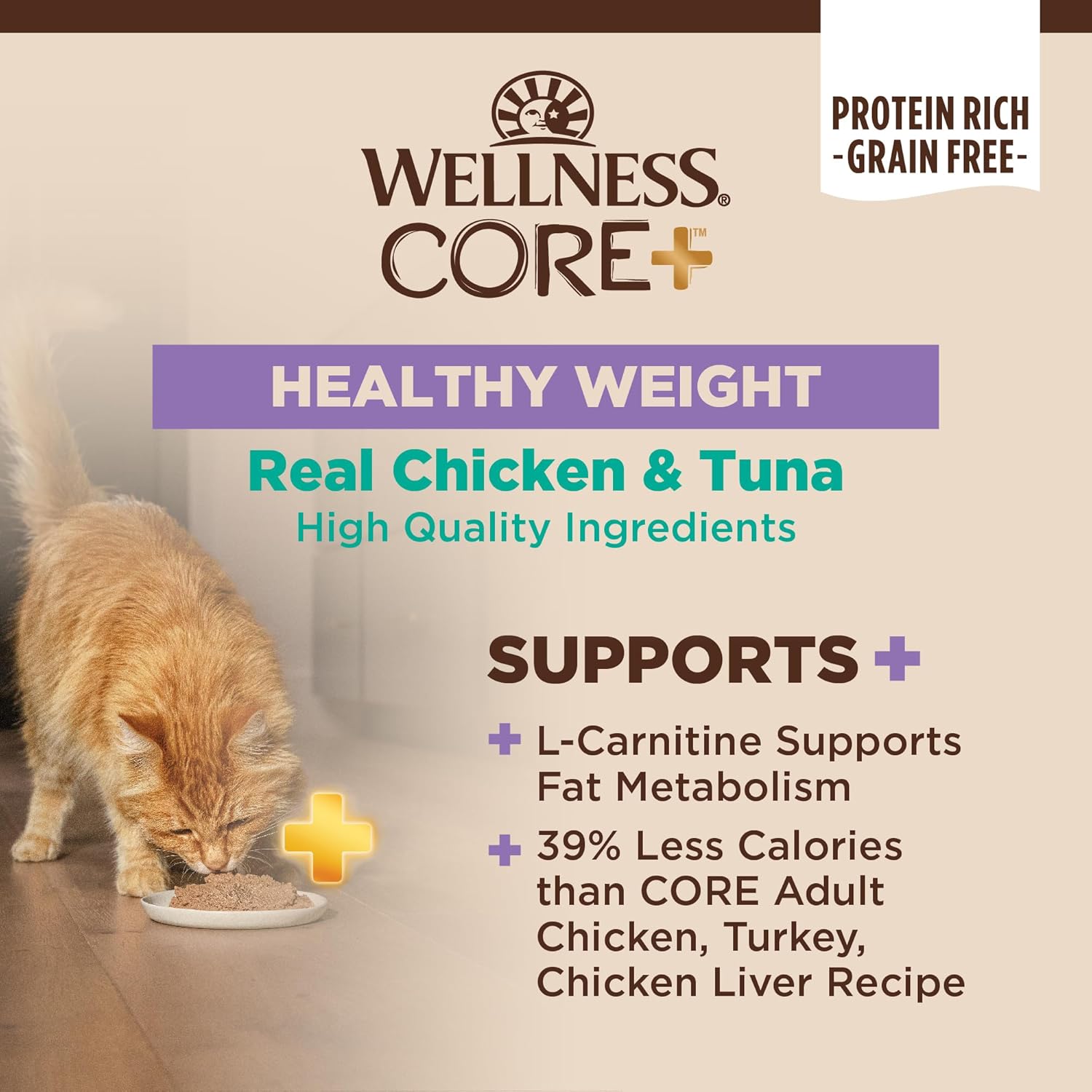 Wellness CORE+ Healthy Weight Pate Adult Wet Cat Food, Natural, Protein-Rich, Grain Free, 2.8 Ounce, 12 Pack (Chicken & Tuna)