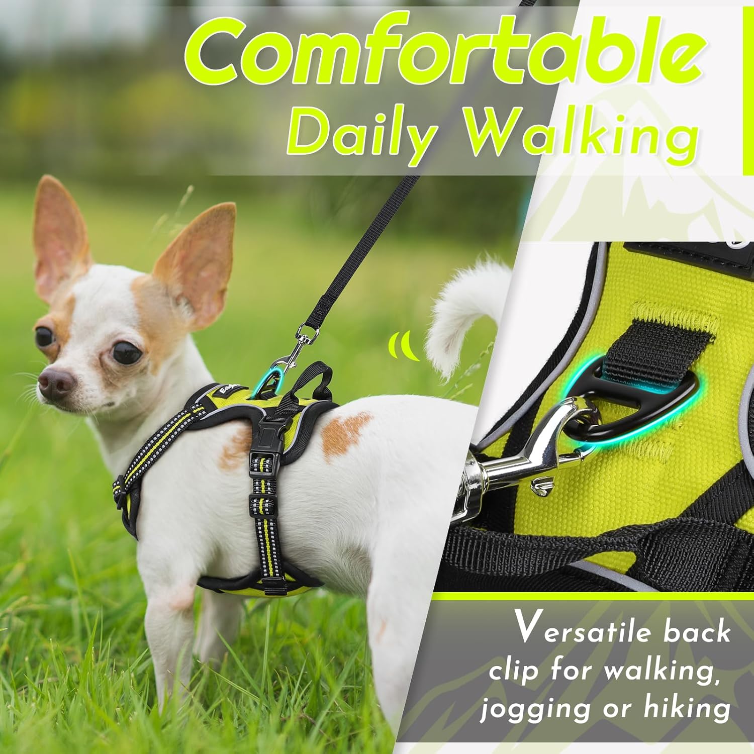 - All-Day Comfort: Made with advanced breathable padded air mesh, our pet harness can keep your puppy friend cool and dry. Combined with a soft-edged, no-choke design, it ensures irritation-free wear and consistent, cozy support in any weather