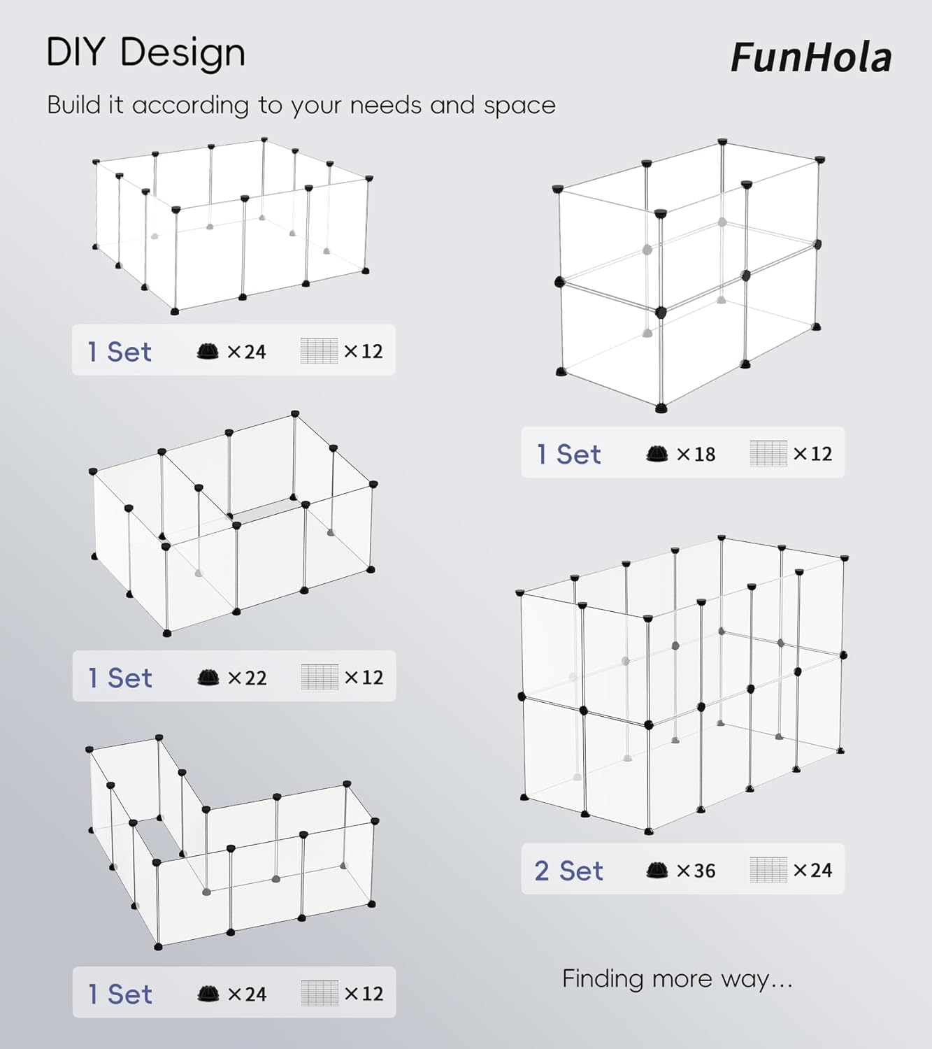 - 𝐒𝐭𝐚𝐛𝐢𝐥𝐢𝐭𝐲 𝐚𝐧𝐝 𝐏𝐫𝐨𝐭𝐞𝐜𝐭𝐢𝐨𝐧: Equipped with 42 nylon straps to securely fasten the small pet fence, and 12 anti-slip mats to prevent the fence from sliding on the floor, providing a stable play area for your pets.