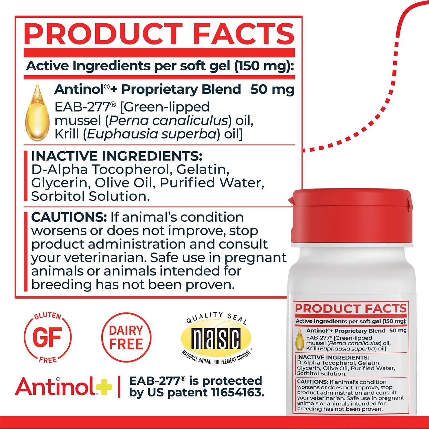 Plus, Mobility, Hip, and Joint Supplement for Dogs, Green-Lipped Mussels and Krill Oil - Dog Joint Supplement, Better and Faster Than Glucosamine and Chondroitin, 150 Soft Gels