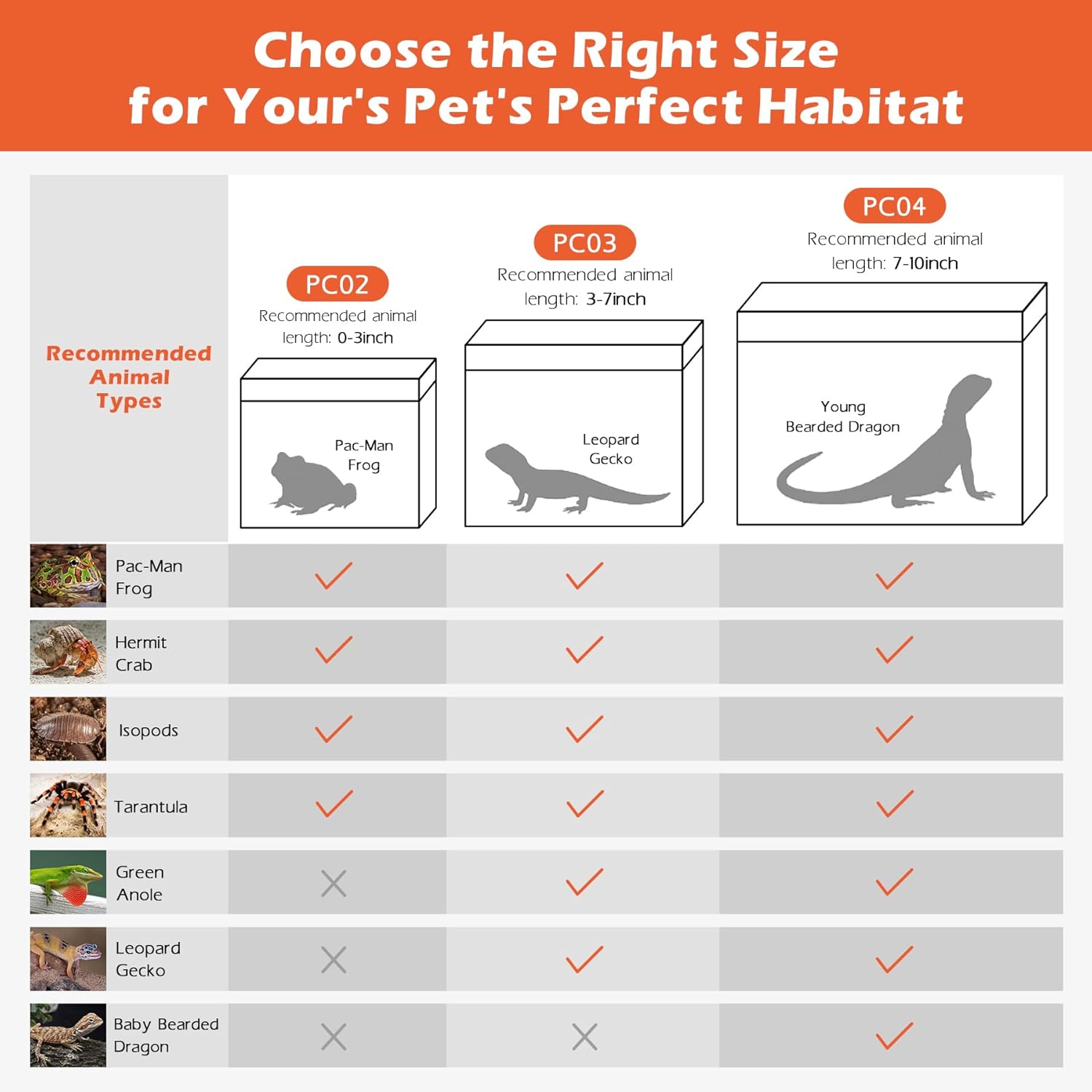 - Wide Application: This ecological rainforest terrarium is perfect for a variety of amphibians and reptiles, including lizards, tortoises, chameleons, snakes, frogs, spiders, turtles, geckos, bearded dragons, ball pythons, and more