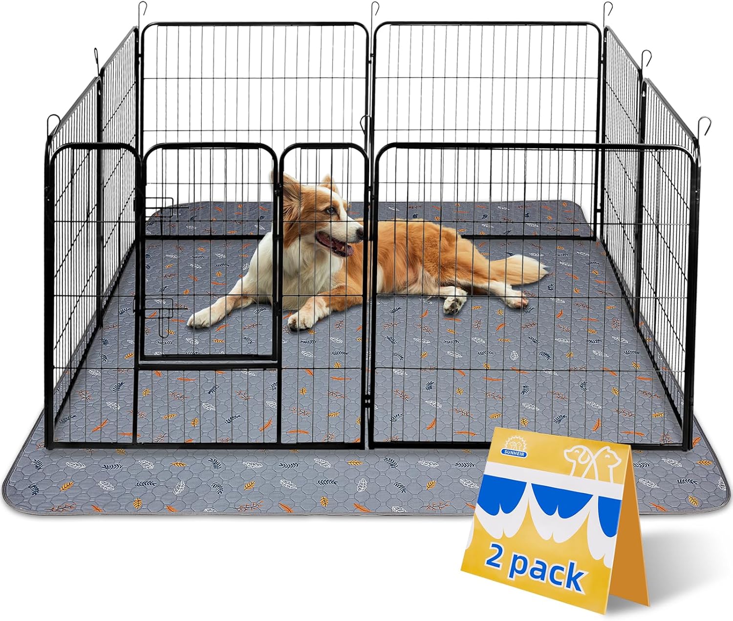 Sunheir Washable Pee Pads for Dogs Extra Large 36" x 48" 2-Pack Reusable Puppy Pads Pet Training Pads, Whelping Pad, Non-Slip Protects Against Urine Leakage (Leaves - Light Grey, 36x48)