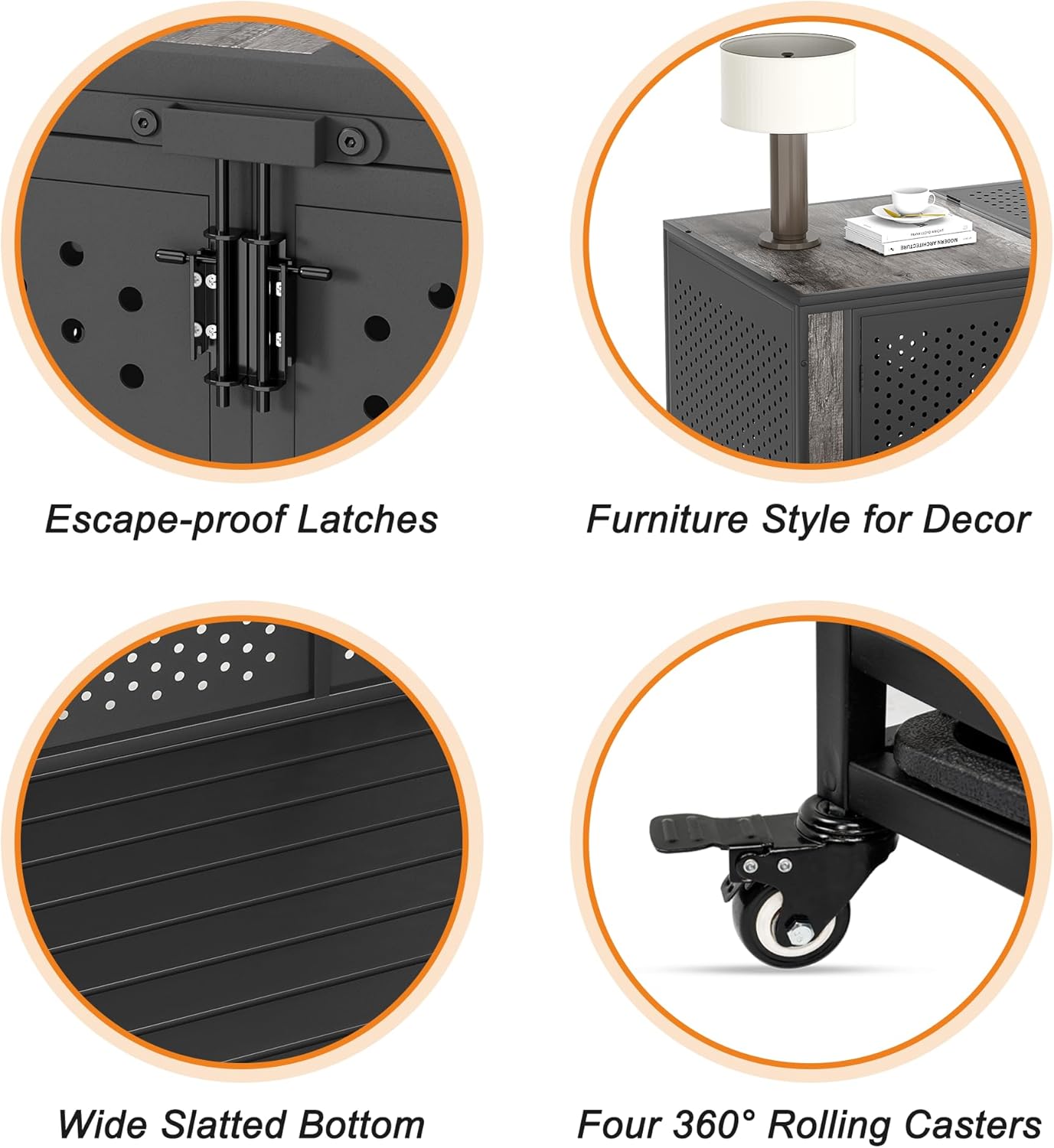 - [Enclosed Design with Ventilation Holes] Unlike traditional crates with metal bars, this innovative design features sturdy panels with strategically placed small holes(Diameter 0.5 inch, specifically designed for dog’s teeth). This design not only prevents the harm caused by bites but also provides ample ventilation for your animal companions.