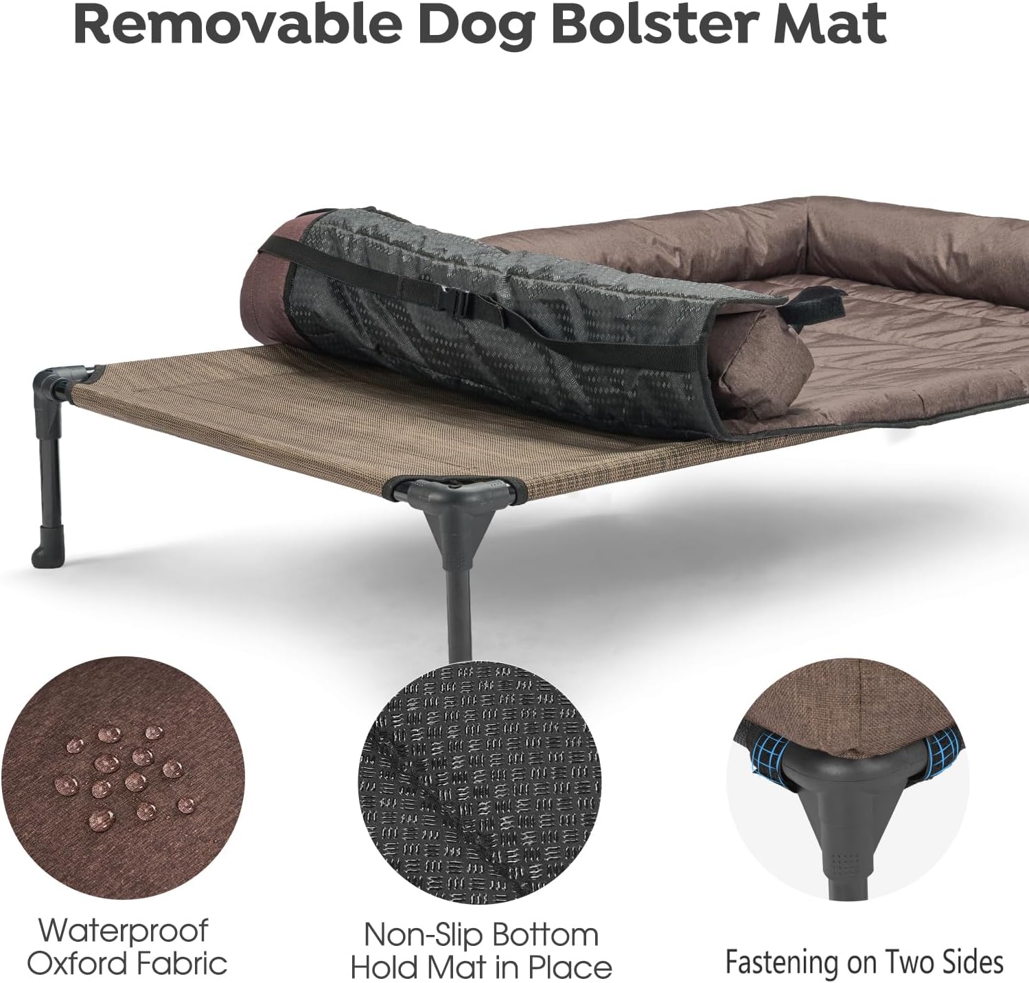 Veehoo Cooling Elevated Dog Bed Add Removable Waterproof Bolster Cushion Mat, Raised Pet Cot with Breathable Teslin Mesh, No-Slip Feet, Dog Sofa Bed for Indoor Outdoor, Medium, Brown CWC2331B