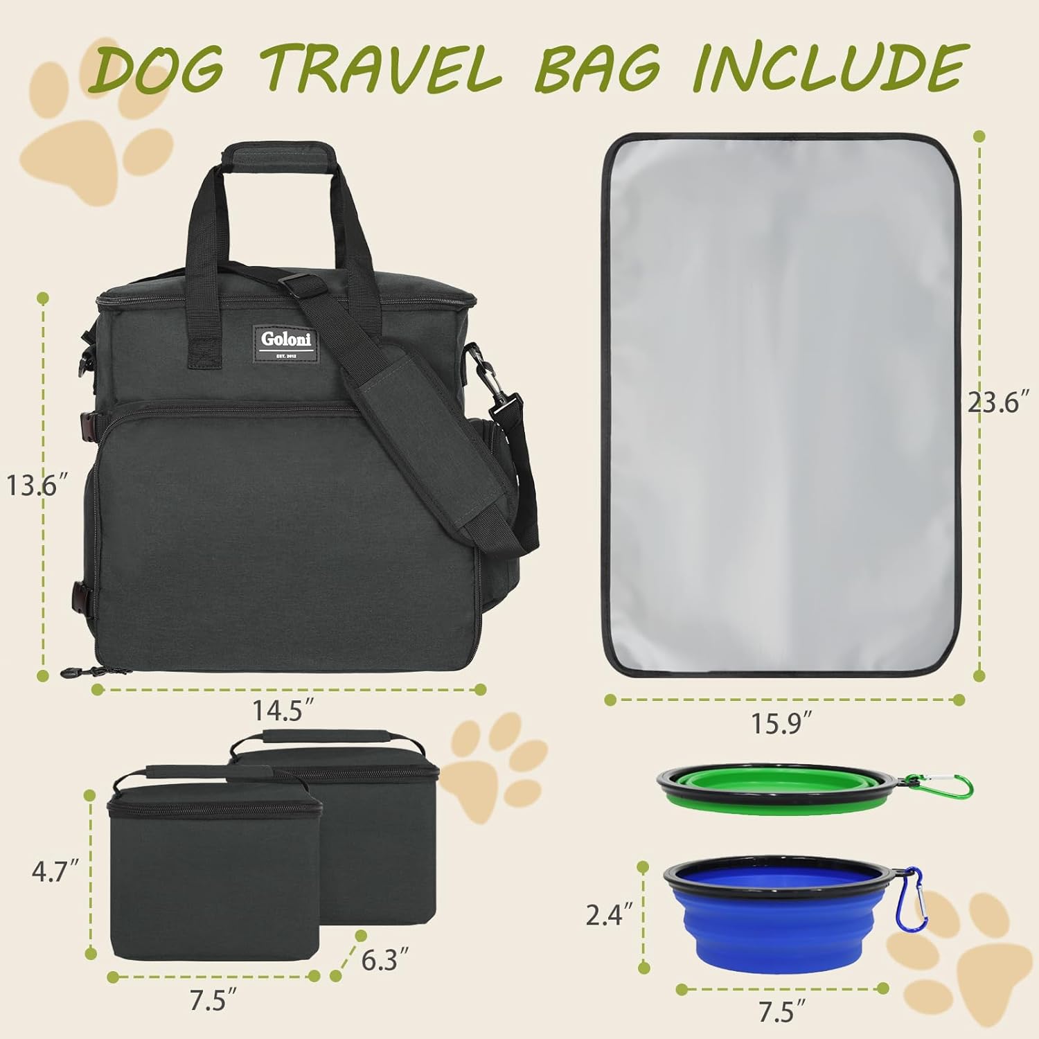 Dog Travel Bag Airline Approved–Pet Travel Tote with Collapsible Bowls,Food Containers & Feeding Mat–Multi-Pocket Organizer for Dogs & Cats, Durable & Water-Resistant for Hiking,Trips,Outdoors