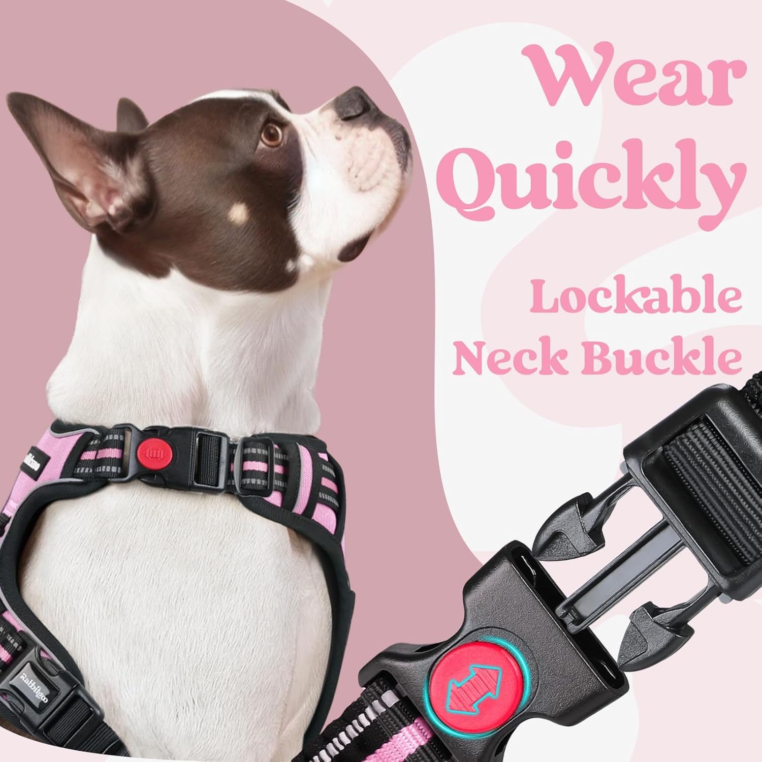 rabbitgoo Dog Harness Medium Sized, No Pull Pet Harness with 3 Buckles, Adjustable Soft Padded Vest with Control Handle, Walking Reflective Pet Vest for Medium Dogs, Pink, M