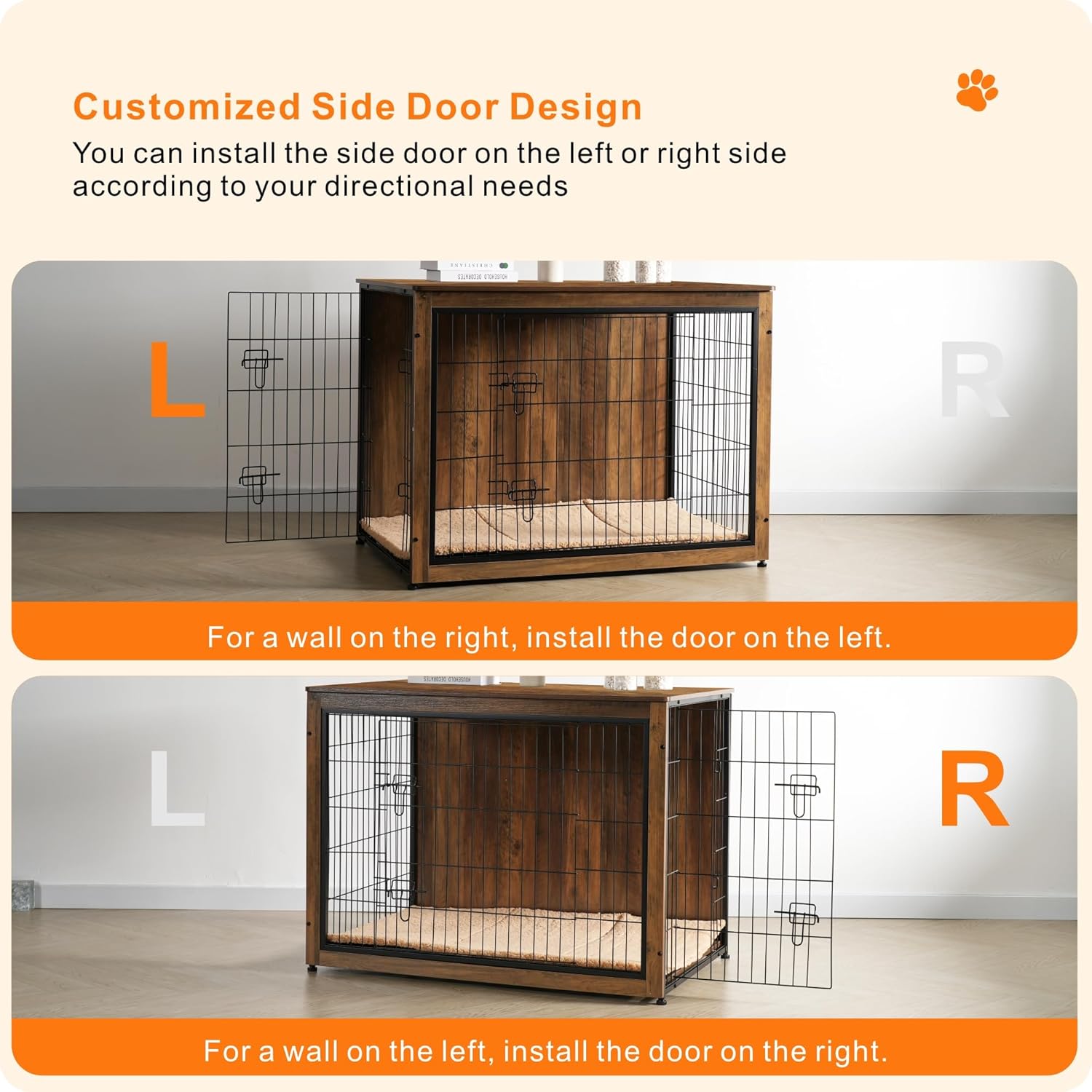 - 【Dog crate with Cushion】 Matching cushion in the crate take your dog a warm and more comfortable sleep, and also we use the wooden plate at the bottom, no pet foot jamming, more safety.