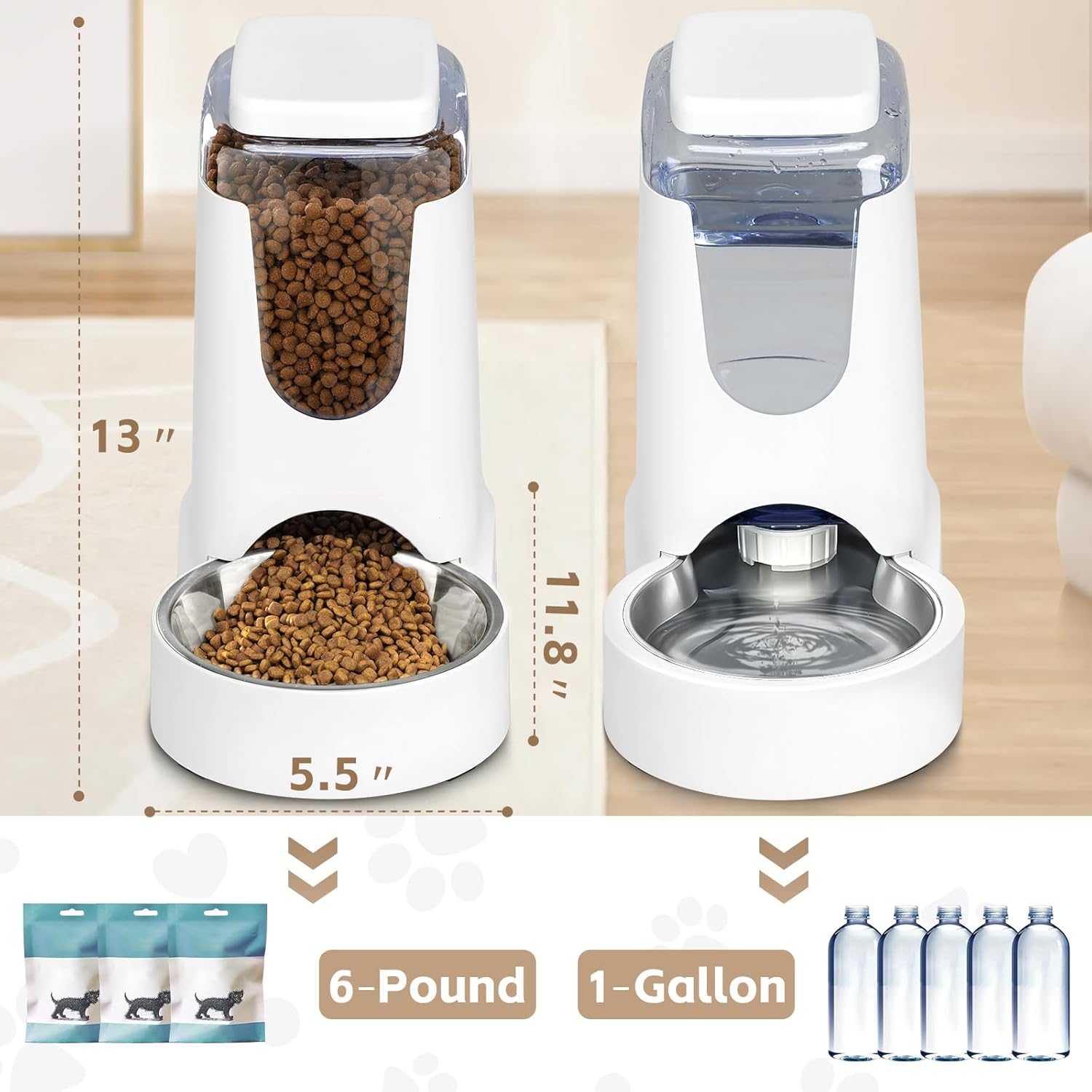 - Cat Dog Automatic Feeder and Water Dispenser: automatic food feeder*1, pet water dispenser* 1. pet food feeder and waterer set suitable for small and medium dogs or cats