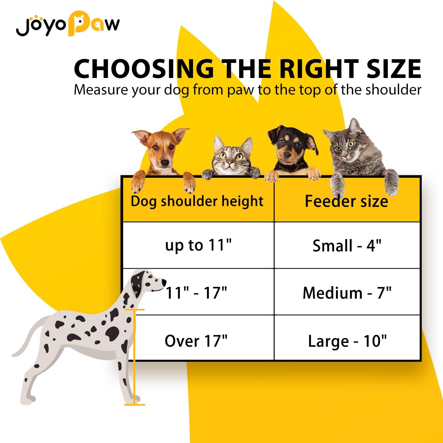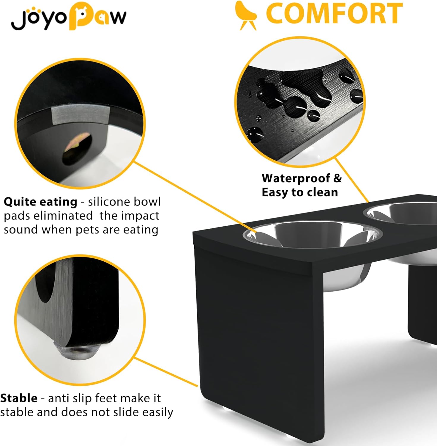 - IMPROVE HEALTH STATUS? JoyoPaw bamboo dog food stand provide ease of access to food and water which help to reduce bloating and neck strain in dogs. Encourage effective digestion and avoid joint pressure to protect your adorable friend.