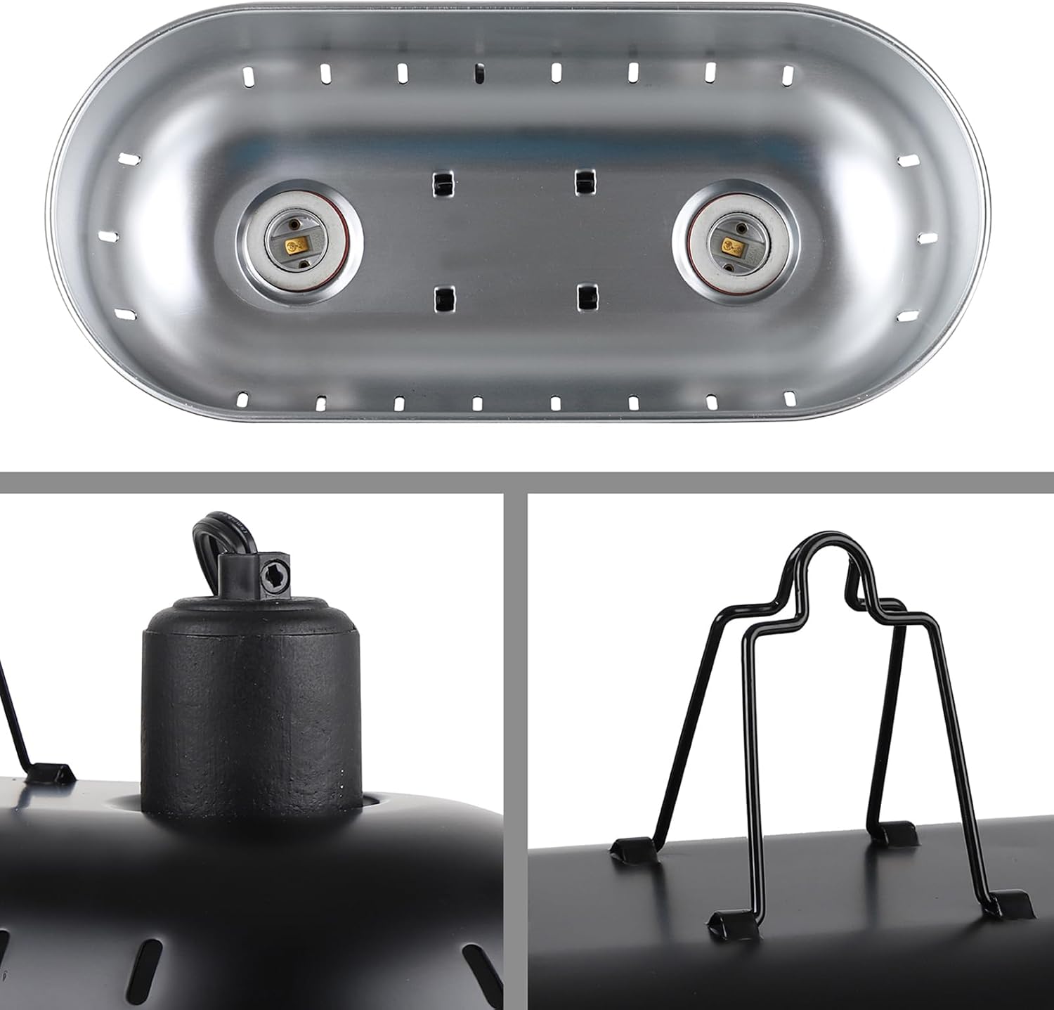 - 【With 2PCS 150W Ceramic Heat Emitter】:This dual dome lamp fixture also includes two 150W ceramic heat lamps. Made of durable ceramic elements, the ceramic heat emitters for reptiles offer excellent heat radiation without emitting any light, ensuring they won't disturb the reptiles' sleep cycle.