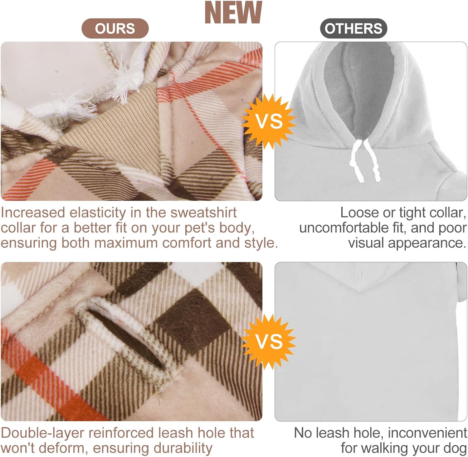 - Stylish & Practical Look: This plaid dog hoodie boasts a classic vintage check pattern that makes your pup stand out! Includes a handy back pocket for storing treats, toys, or waste bags. reinforced leash hole adds safety and durability—perfect for walks, running, hiking, training, or festive occasions like Christmas, Thanksgiving, photo shoots, and birthday parties