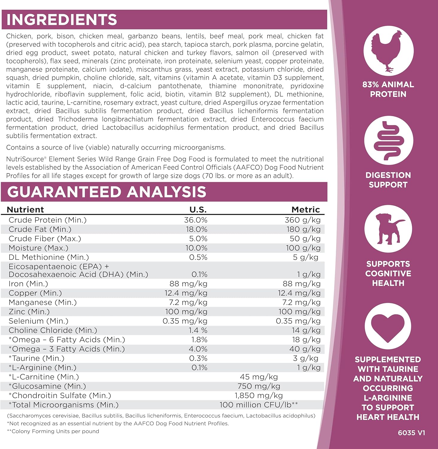 - NutriSource Element Series Wild Range is formulated to meet AAFCO guidelines for all life stages