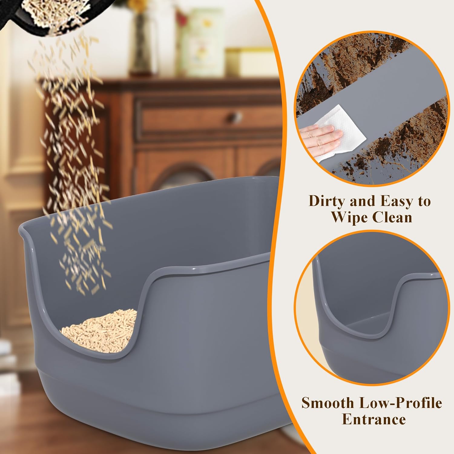 - No Gaps: One-piece molded construction requires no assembly, simple and no gaps, cat litter won't leakage or get stuck in the crevices, say goodbye to annoying cleaning problems,making cleaning easier.