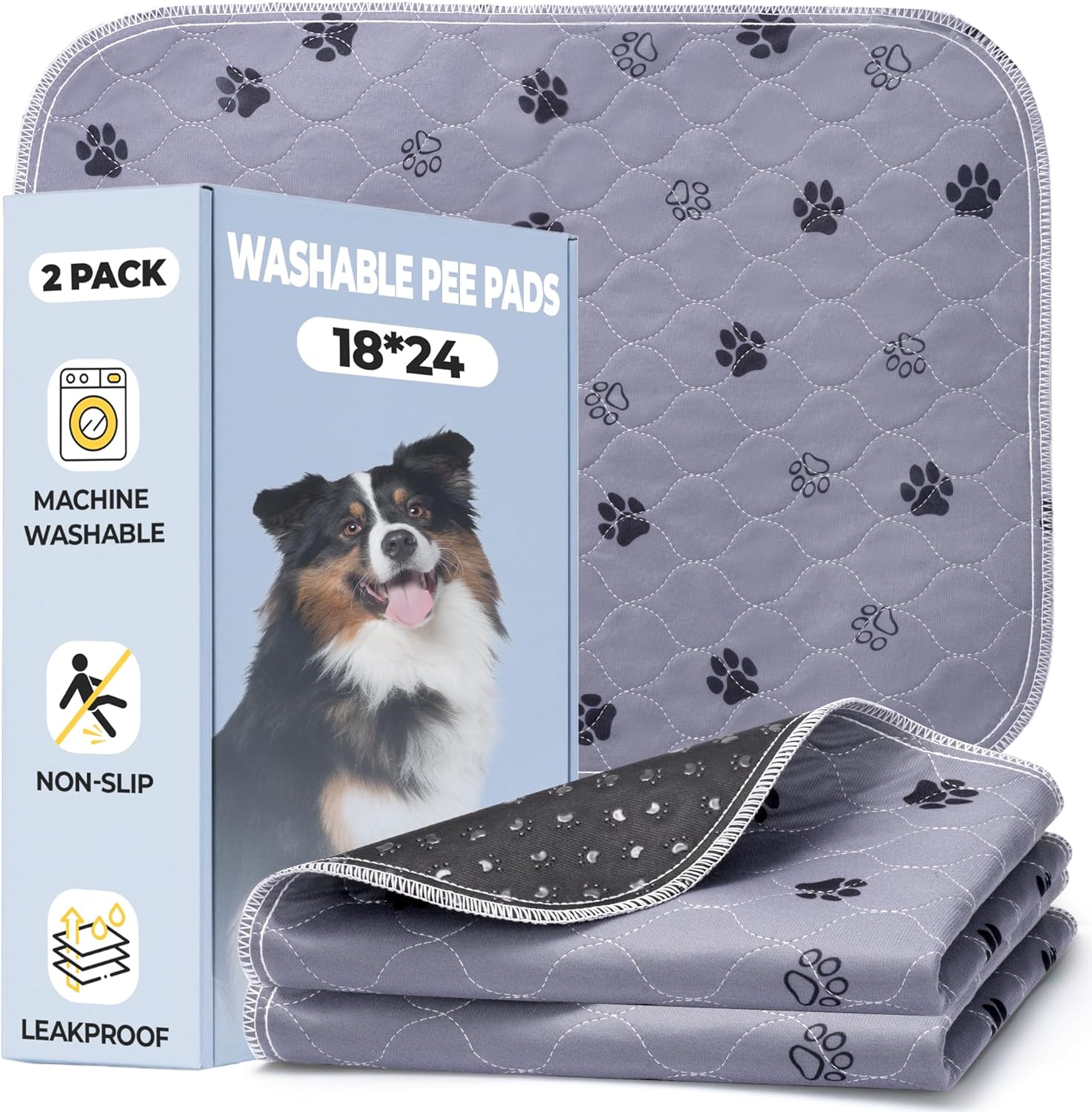 Fostanfly Reusable Puppy Pads, 2 Pack 18"x 24" Washable Pee Pads for Dogs, Absorbent and Leakproof Wee Wee Mat, Waterproof Non Slip Training Mats for Potty, Crate, Playpen, Bed, Sofa