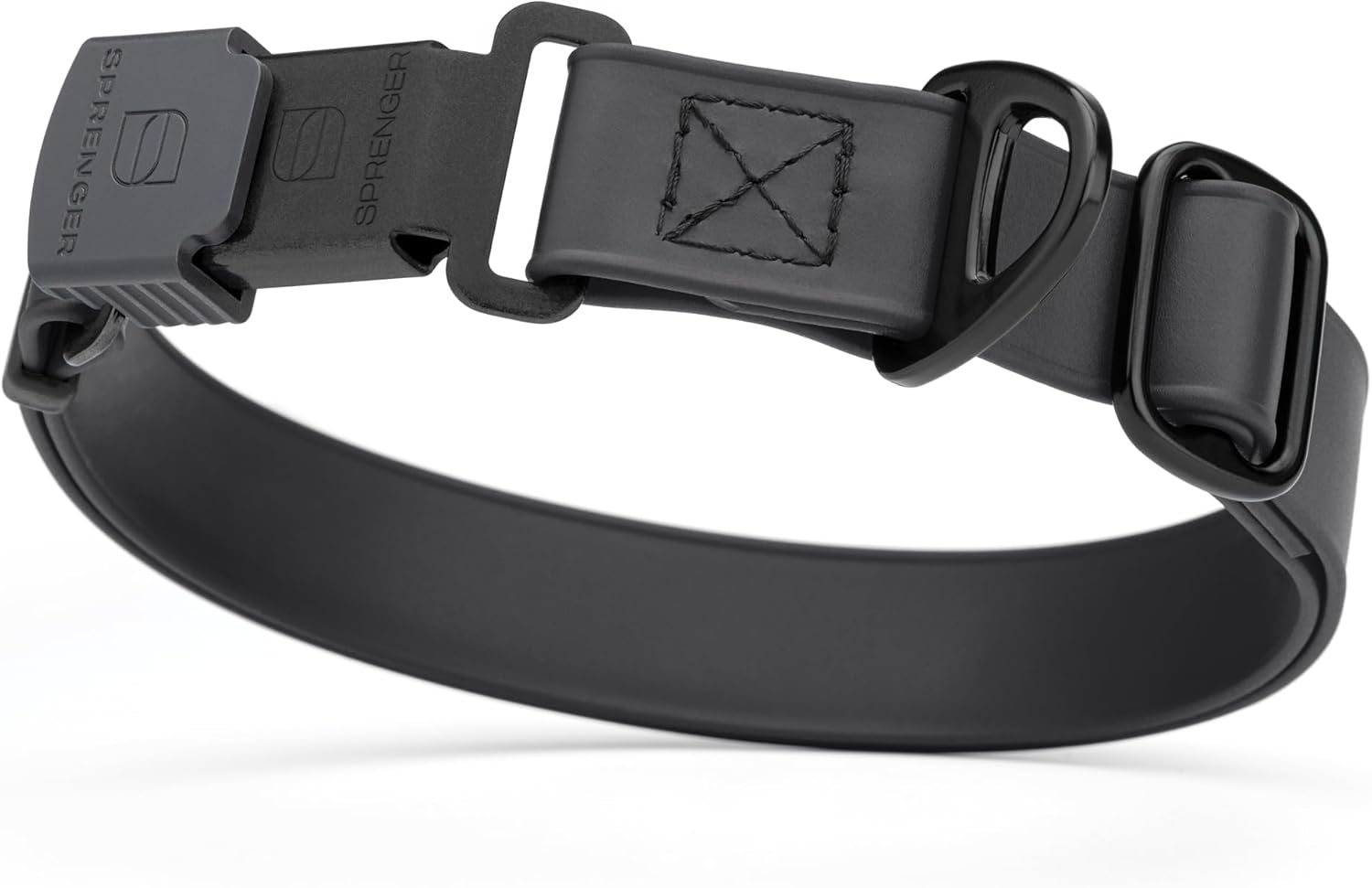 Dogline Biothane Waterproof Dog Collar with Herm Sprenger Stainless Steel Quick Release Buckle – Heavy Duty Tactical Durable Collar for Dogs – Comfortable and Safe Pet Collar, W 3/4" L 12-19", Black