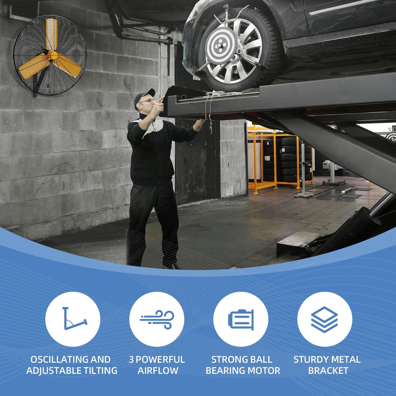 30 inch Oscillating High Velocity Wall Mount Fan, 8550 CFM Industrial Heavy Duty Metal Wall Fans, 3 Speeds, Adjustable Height and Tilt, Commercial Shop Fan for Garage, Workshop