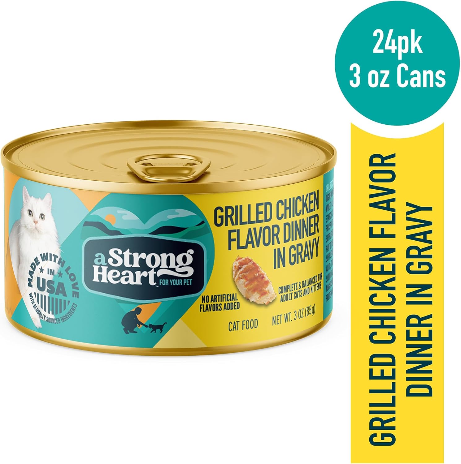 A Strong Heart Canned Wet Cat Food, Grilled Chicken Flavor in Gravy - 3 oz Cans (Pack of 24), Made in The USA with Pieces of Real Grilled Chicken