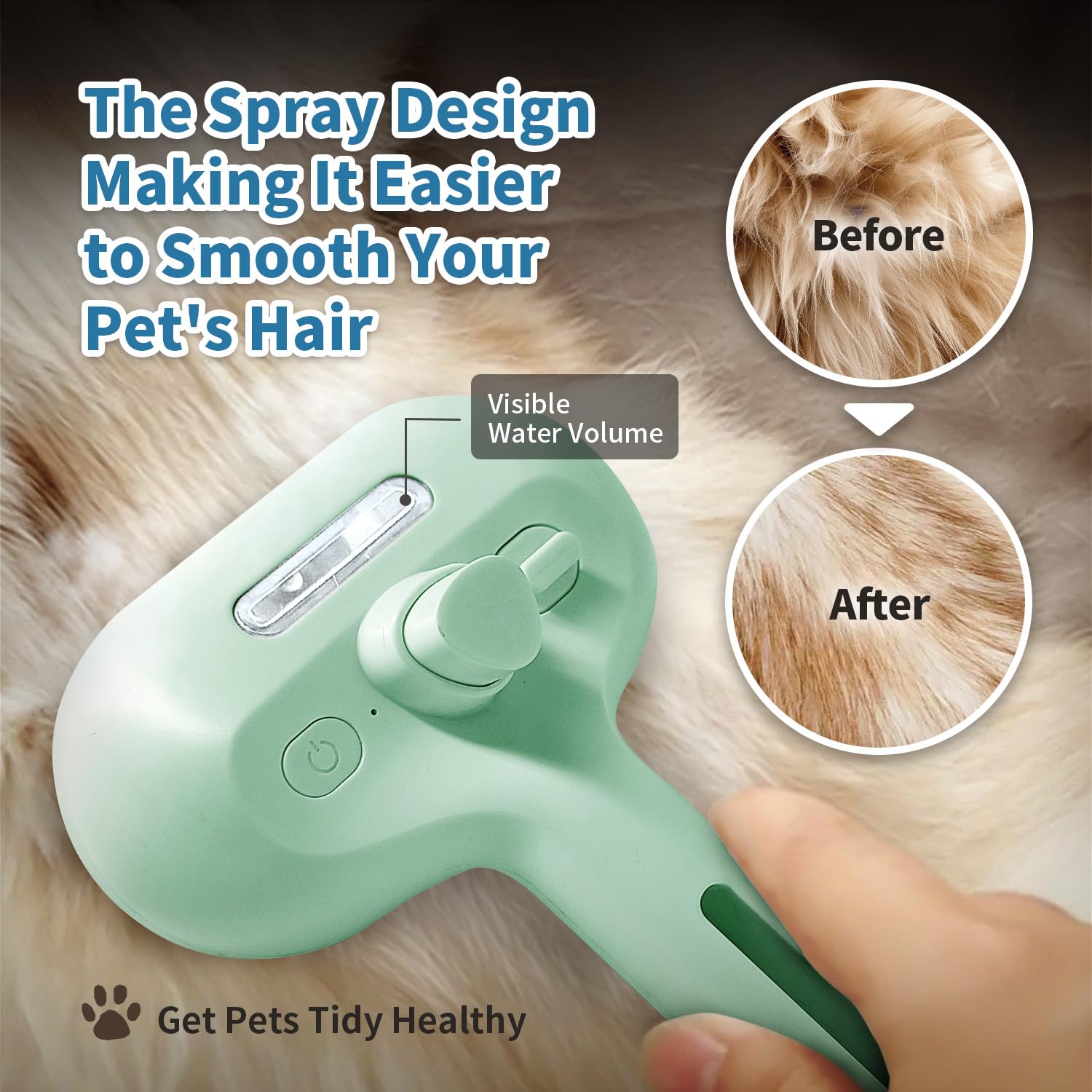 Steam Pet Brush for Shedding, 3 In 1 Self Cleaning Anti-Static Steamy Hair Brush, Reduces Loose Hair and Shedding for Long and Short Hair Pets Grooming, Green