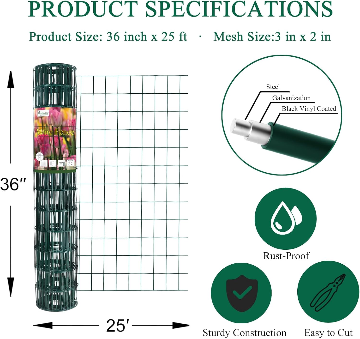 Green PVC Coated Welded Wire Fence 36 Inch x 25 Foot, 2 Inch x 3 Inch 16GA, Garden Border Fencing Roll Vinyl Coating Metal Wire Mesh for Yard Vegetable Plant Protection Poultry Netting