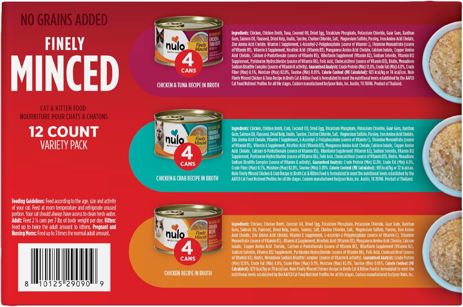 Nulo Finely Minced Variety Flavor Wet Canned Cat Food, 2.8 Ounce (Pack of 12)
