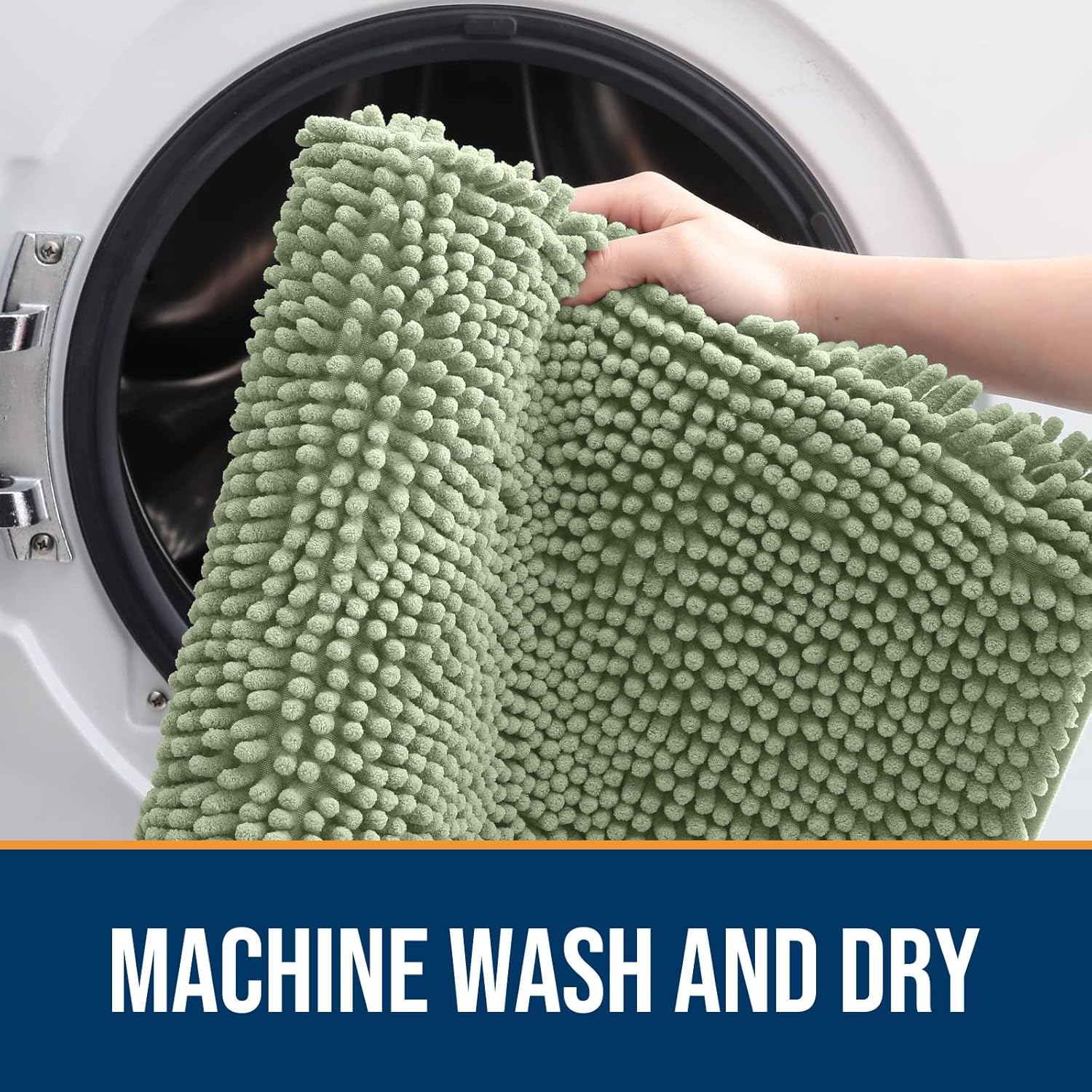 OLANLY Dog Door Mat for Muddy Paws 47x24, Absorbs Moisture and Dirt, Absorbent Non-Slip Washable Doormat, Quick Dry Chenille Mud Mat for Dogs, Entry Indoor Entryway Carpet for Inside Floor, Sage Green