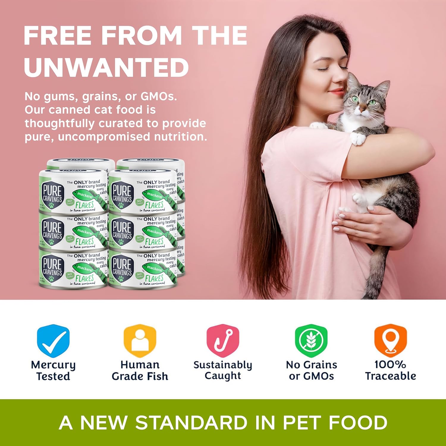 Mackerel Flakes in Tuna Consommé, Canned Wet Cat Food Soup, 100% Mercury-Tested, Moist Can Fish, Grain-Free Protein, Non-GMO, 3oz, Pack of 12