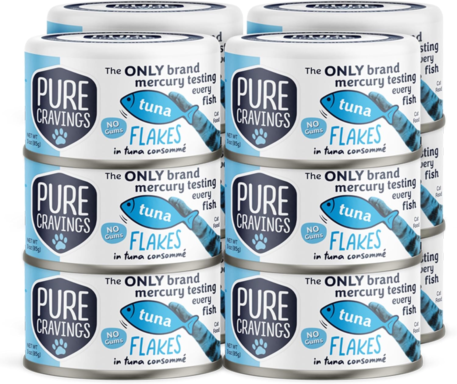 Tuna Flakes in Tuna Consommé, Canned Wet Cat Food Soup, 100% Mercury-Tested, Moist Can Fish, Grain-Free Protein, Non-GMO, 3oz, Pack of 12
