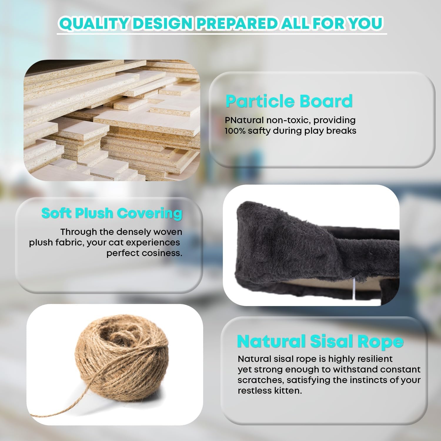 - Material : Particleboard, Plush, Sisal