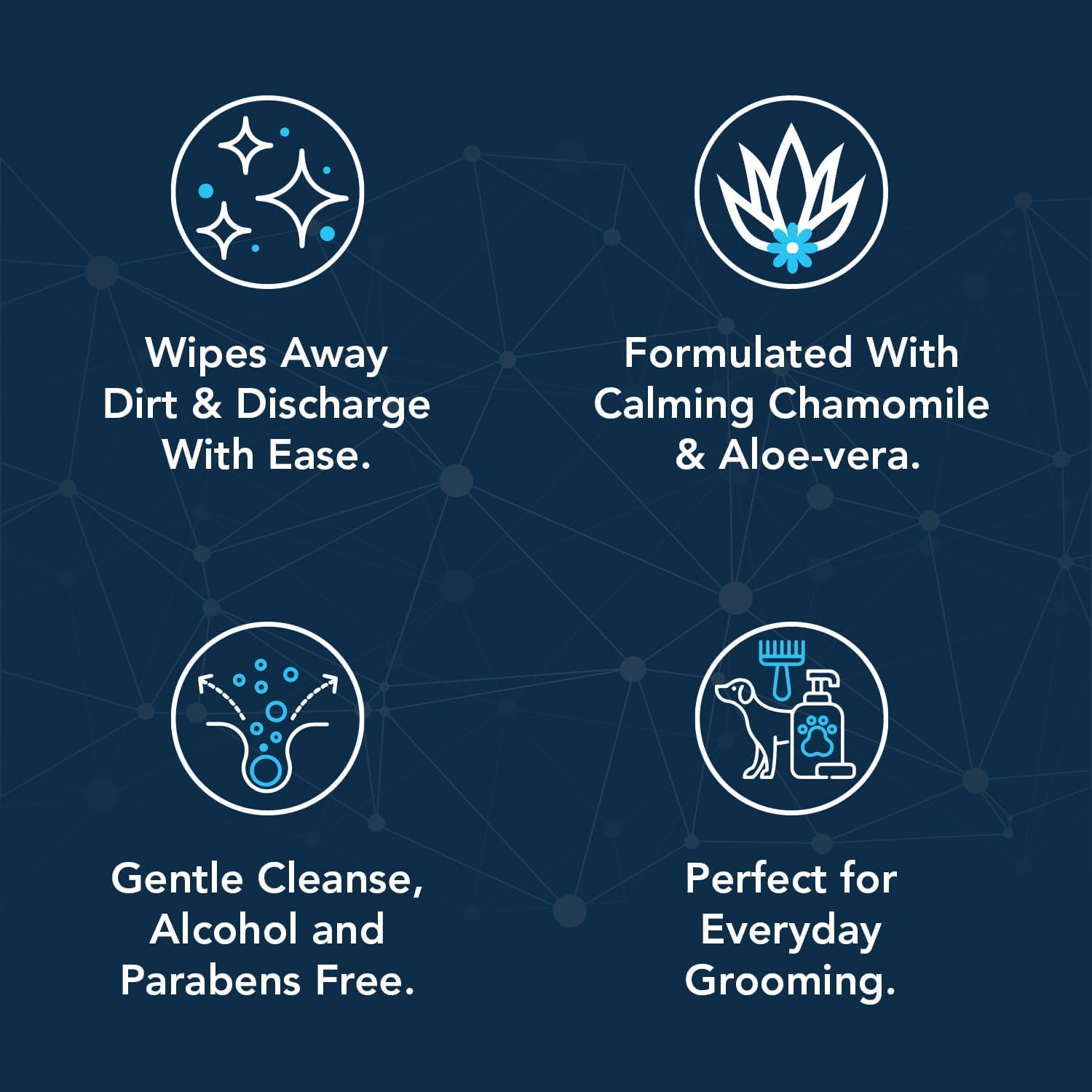- REVITALIZES AND CLEANS - Infused with the calming power of chamomile and aloe vera, along with the goodness of Vitamins C and E, our wipes offer a refreshing cleanse for your dog's eye area, leaving them feeling refreshed and revitalized.