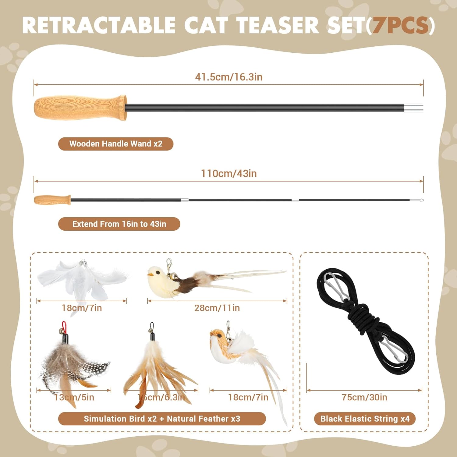 - Cat Teaser Wand Toys for Endless Adventures: This longevity set includes 4pcs elastic strings and 5pcs natural refills (2 birds and 3 feathers), providing countless hours of entertainment.
