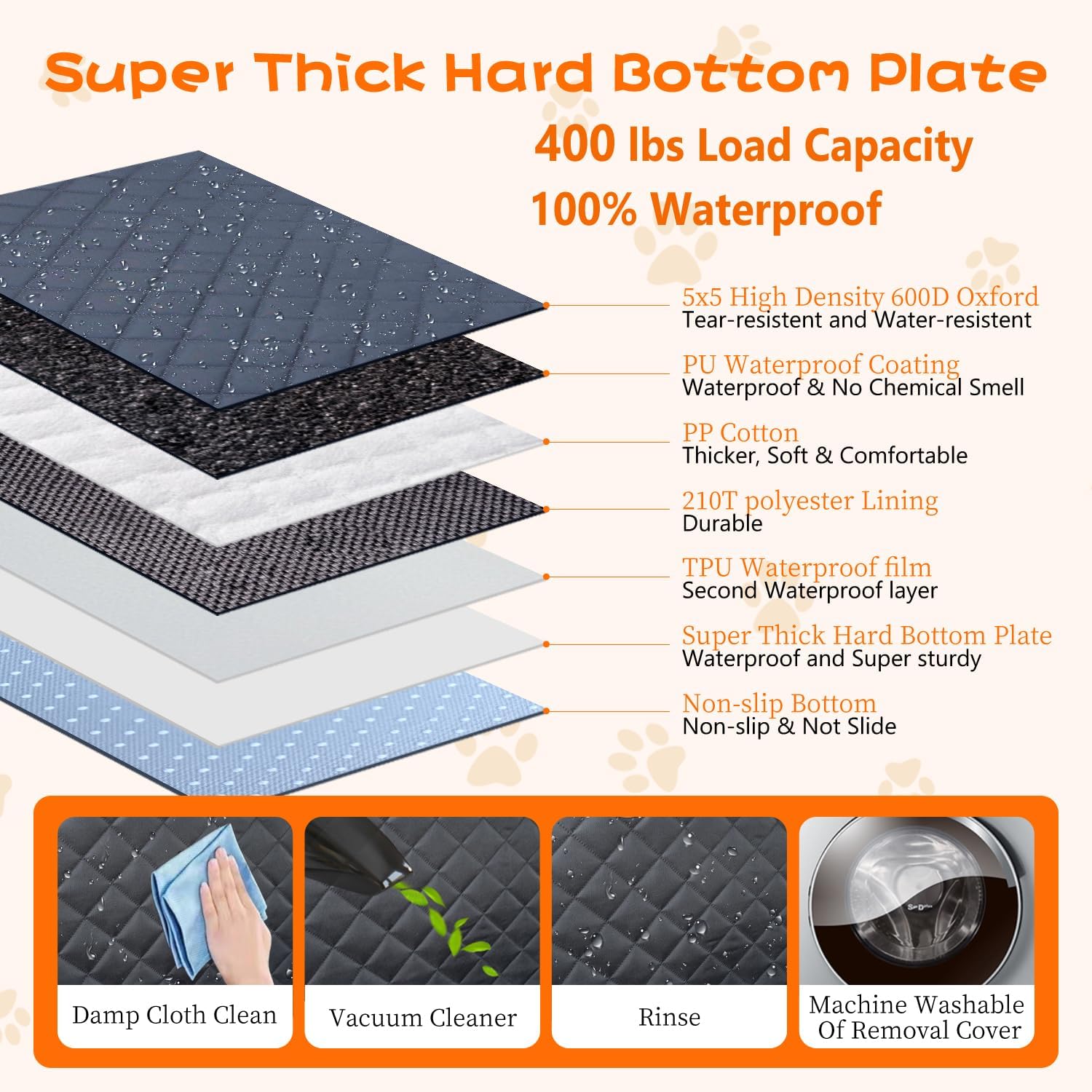 - Waterproof & Odorless Materials - Paw Jamboree back seat extender for dogs is made of 7 layers of fabric and a plastic hollow hard board and E1 density fibreboard, the product without unpleasant odor is friendly to pets and passengers. Meanwhile, it is with water-resistant coating and TPU film material as waterproof layers which help to prevent leaks and messes, especially if your dog jumps right into the car from the rain. Also Paw Jamboree hard bottom dog back seat cover are unique quilted without any holes.