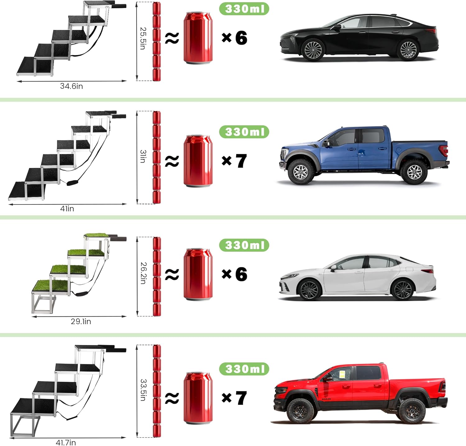 - Multi-Size Step Design: Choose between 5-step (98x67x43cm) and 6-step (106x80x43cm) configurations to best suit your pet's needs and vehicle height - perfect for small to large dogs with a weight capacity of up to 200 lbs.