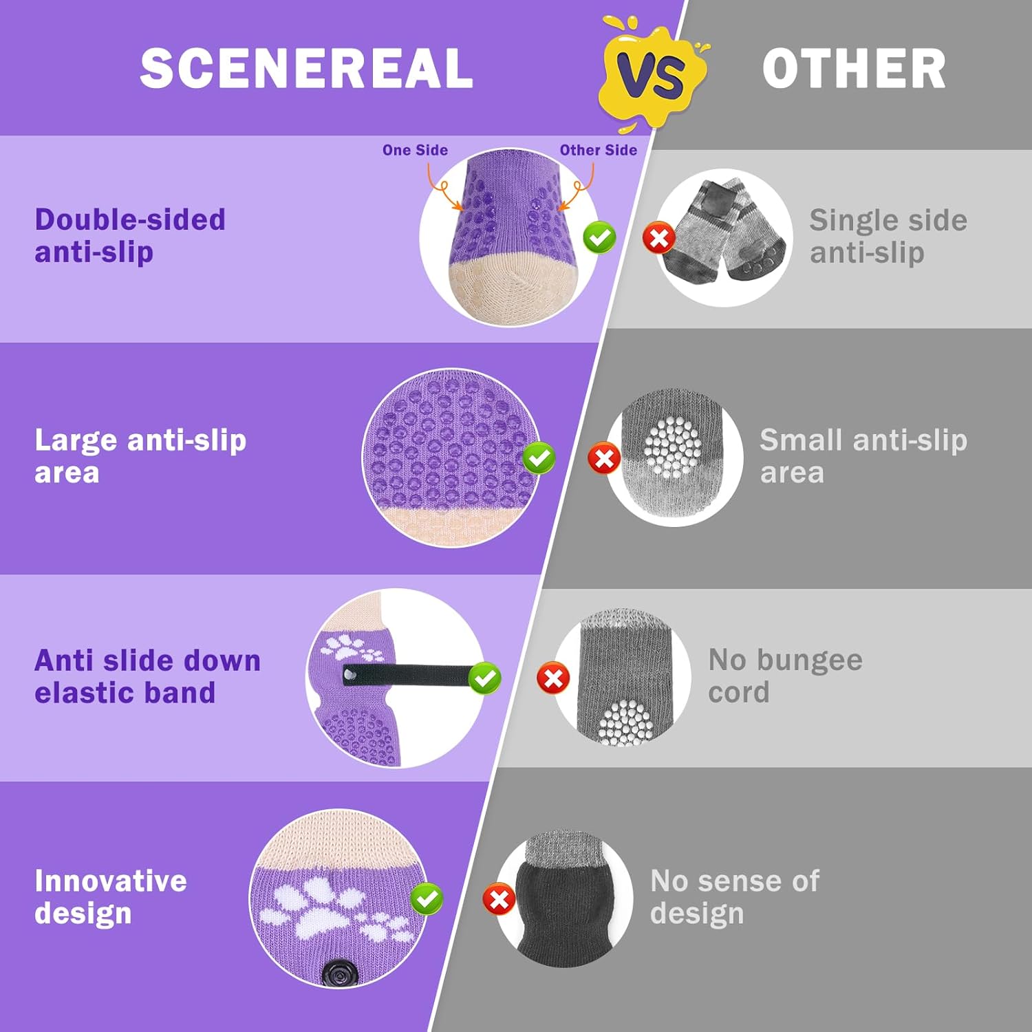 SCENEREAL Anti Slip Dog Sock to Prevent Licking Paws for Hardwood Floors, Boots & Paw Protector Shoes for Hot/Cold Pavement with Grippers, Double Sides Grips for Small Medium Large Senior Dogs, L